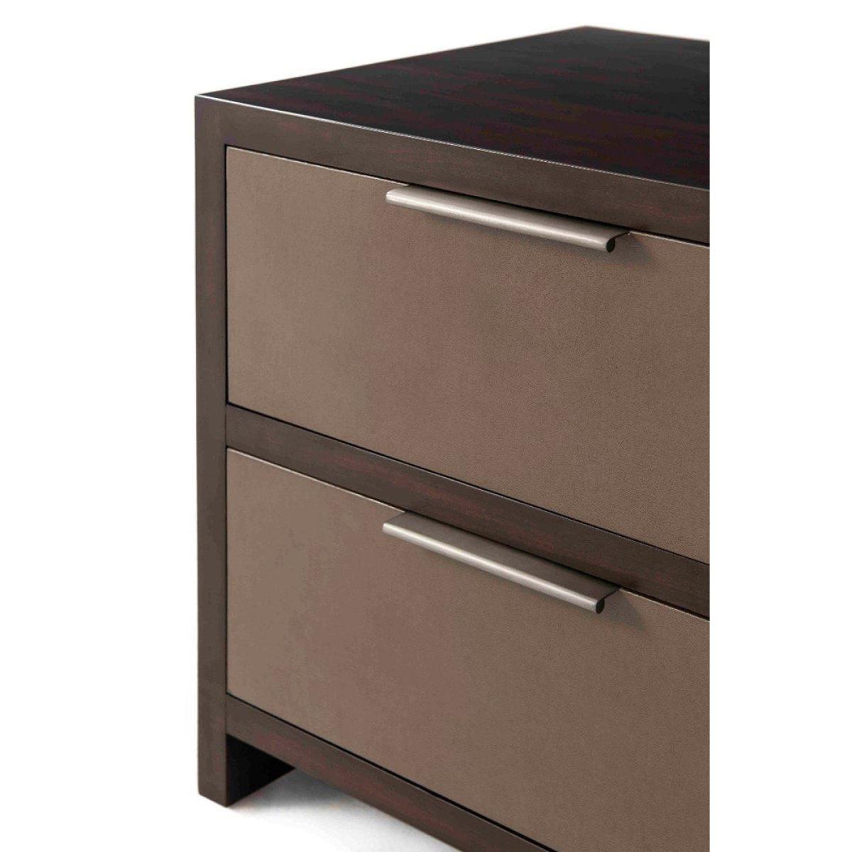 The TA Studio by Theodore Alexander Grayson Bedside Table is an opulent piece of furniture designed to accentuate any luxurious bedroom space. Cherry red wood on the exterior contrasts beautifully with the leather wrapped drawers, exuding decadence. The bedside table is completed with metal handles in a gunmetal finish. This piece is sleek with a minimalist edge, making it the perfect accompaniment to a modern home. The nightstand is generously proportioned, meaning there is plentiful space to accommodate a sizeable lampshade and other ornamental pieces. This plush piece of furniture has been crafted using high-quality materials and finished to create a high-end piece. *Moot Trading Ltd is not a lender and acts only as an introducer. The credit product is provided by Klarna Bank AB (publ). Credit is only available to permanent UK residents aged 18 and over, subject to status. Terms and conditions apply. Please note that the following products are not regulated by the FCA: Pay in 30 days and Pay in 3 instalments. Read More.