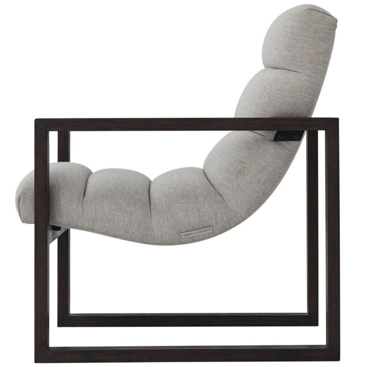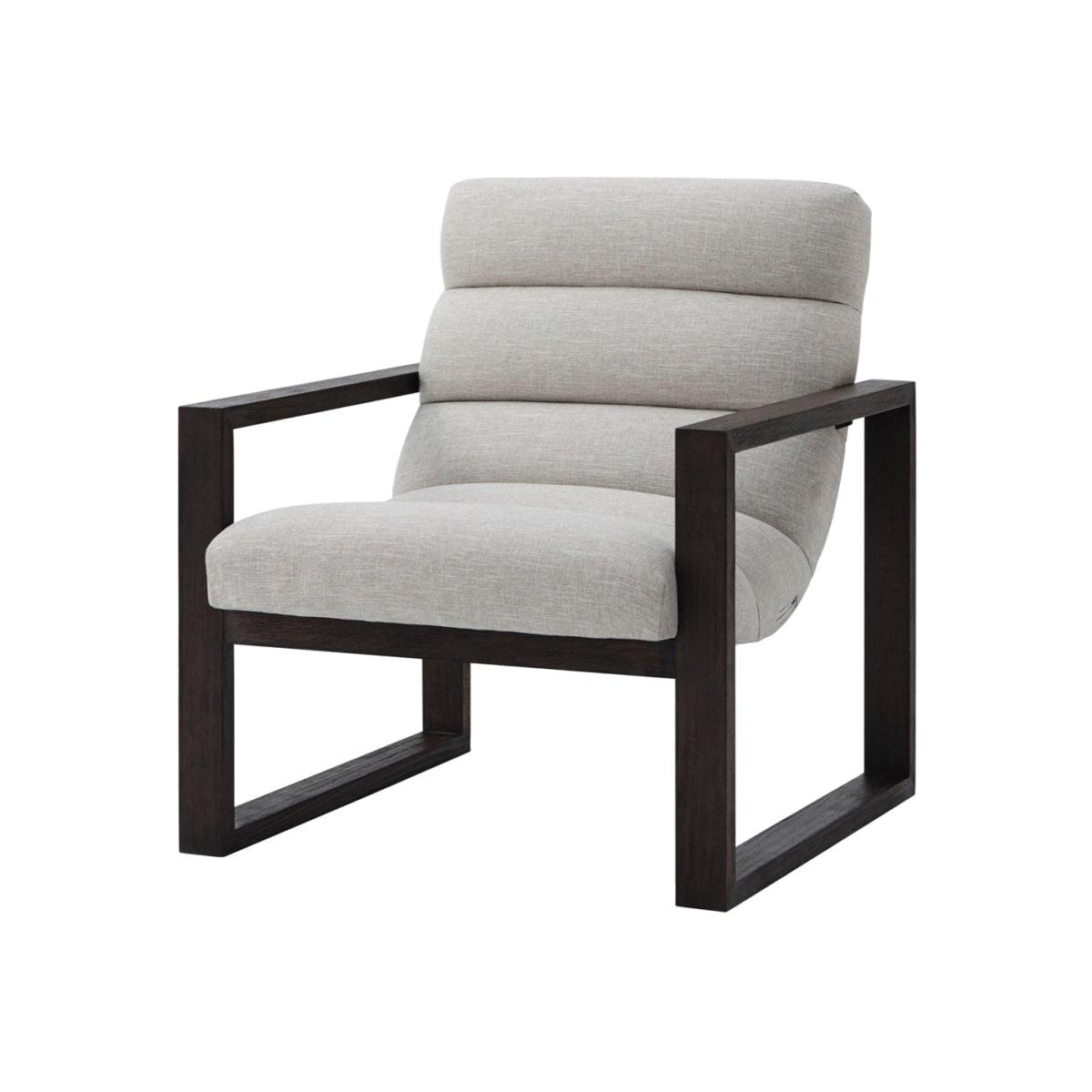 This is the perfect chair for your bedroom or home office from TA Stuido by Theodore Alexander, especially if you have a modern or contemporary décor. This angular chair lets people know that you mean business, so it is a great place to sit for client meetings or to work from home. This chair is well-upholstered in soft grey marble fabric and has a linear pattern running through it.