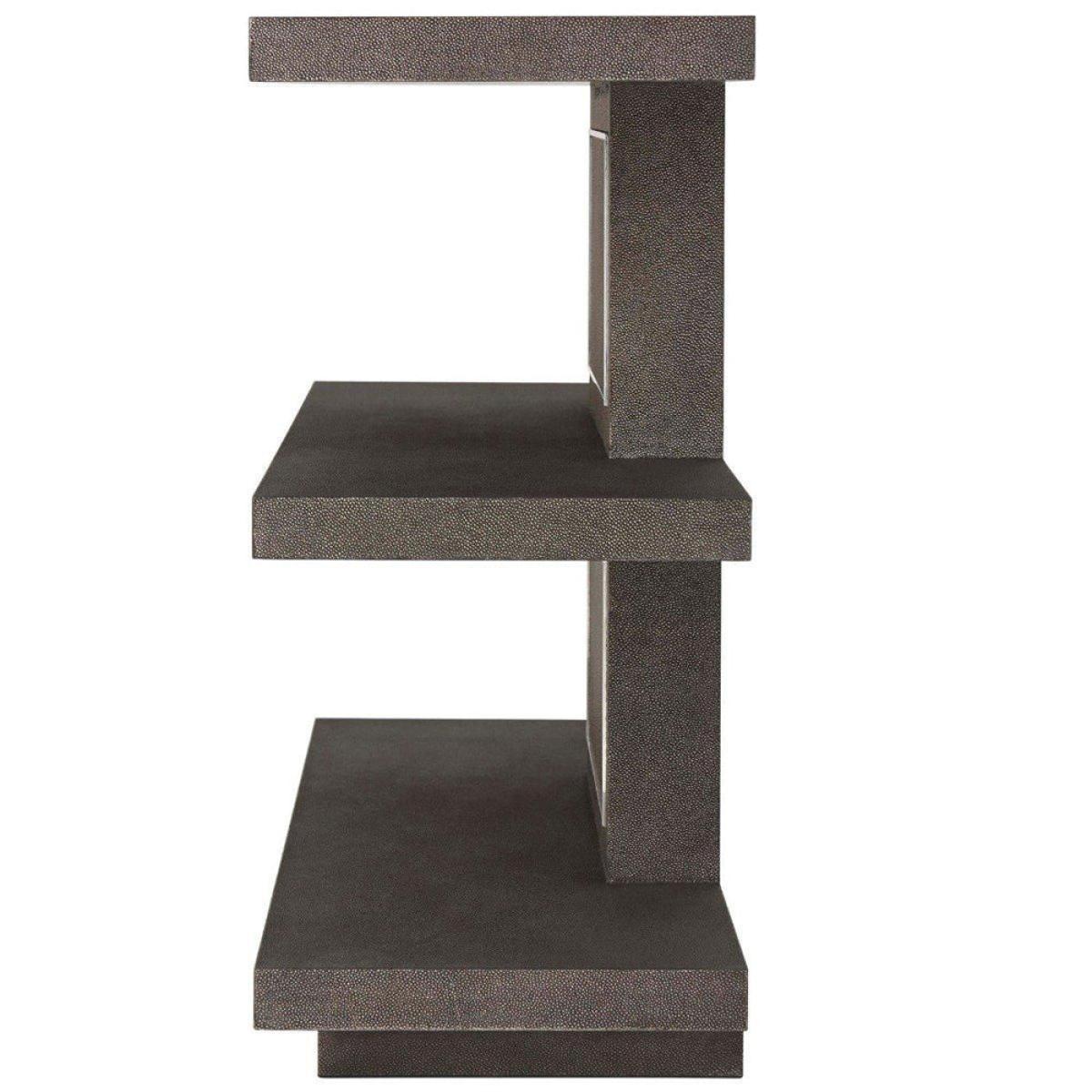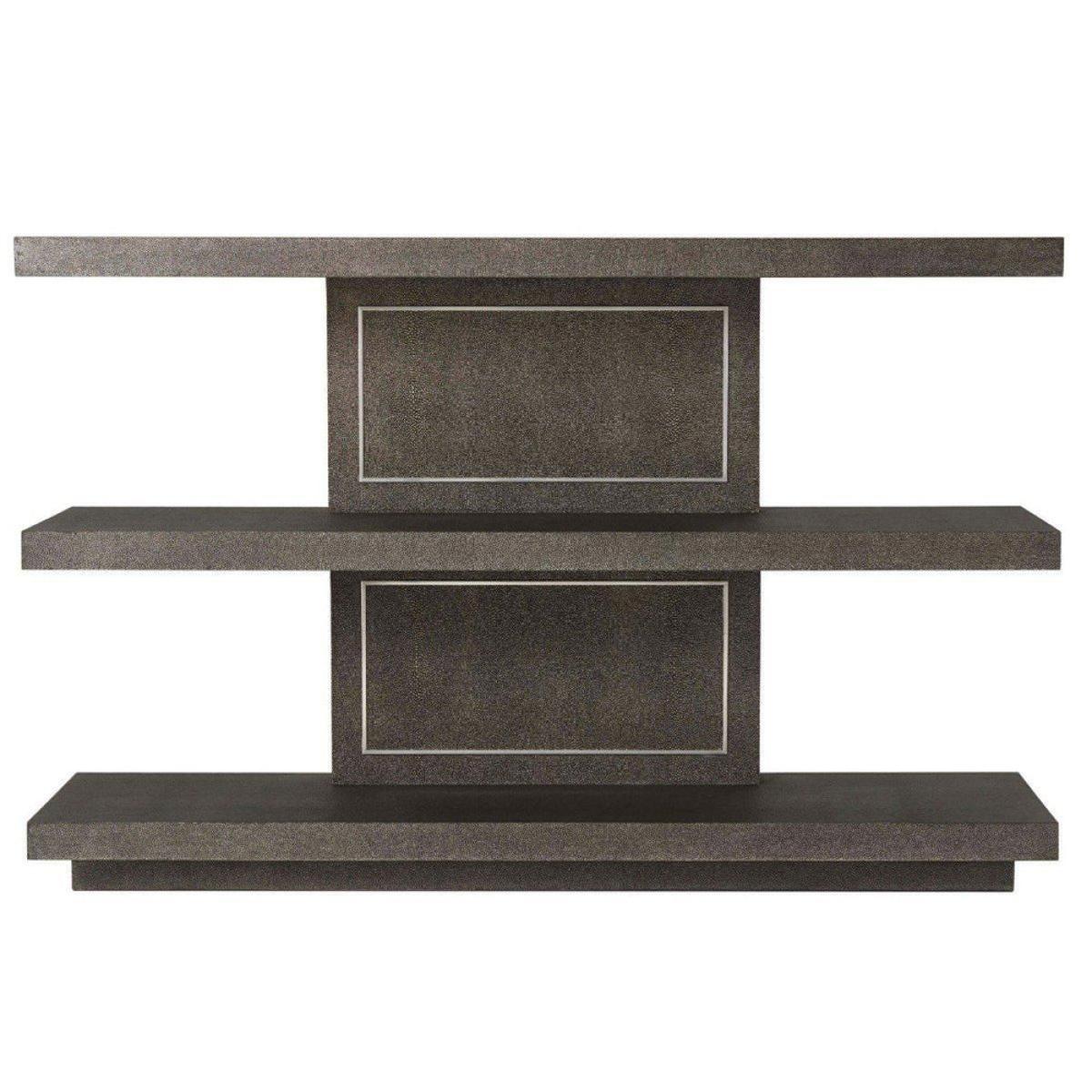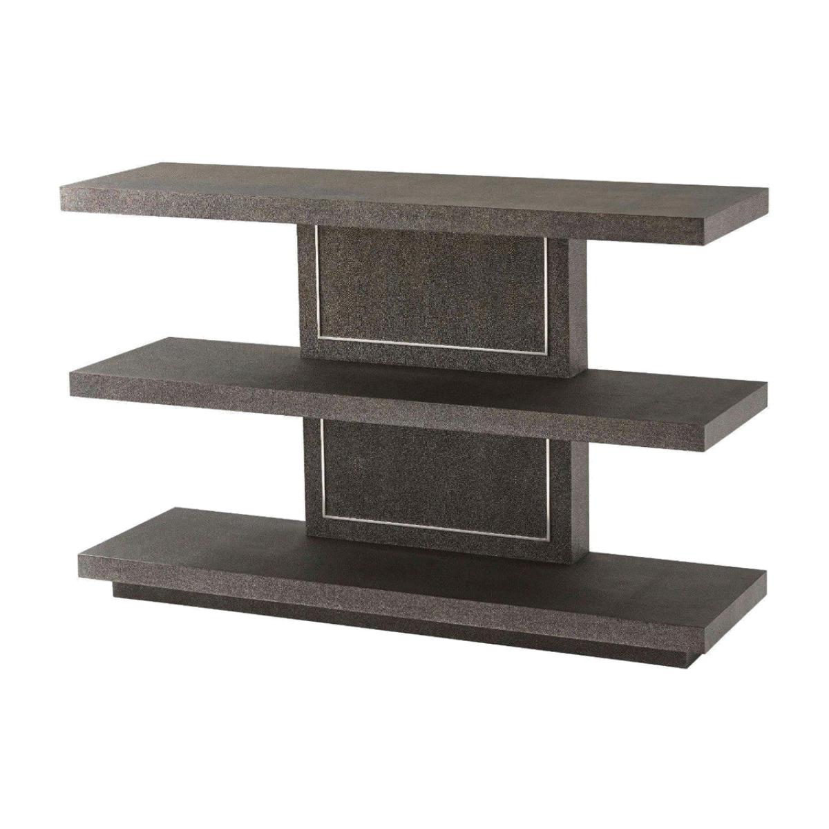 This is a console table with a difference. From TA Studio by Theodore Alexander It features three separate shelves which can store all your essentials such as your keys, wallet, and phone. You may also like to display some freshly cut flowers or a bowl of fruit. This lovely console table would be equally suited to becoming a trophy stand or a bookshelf, depending on your needs and personal preferences. It has been created using shagreen leather and features a polished nickel back panel. This piece will look wonderful in your hallway, living space, or bedroom. It will blend well with any existing design and colour scheme. *Moot Trading Ltd is not a lender and acts only as an introducer. The credit product is provided by Klarna Bank AB (publ). Credit is only available to permanent UK residents aged 18 and over, subject to status. Terms and conditions apply. Please note that the following products are not regulated by the FCA: Pay in 30 days and Pay in 3 instalments. Read More.