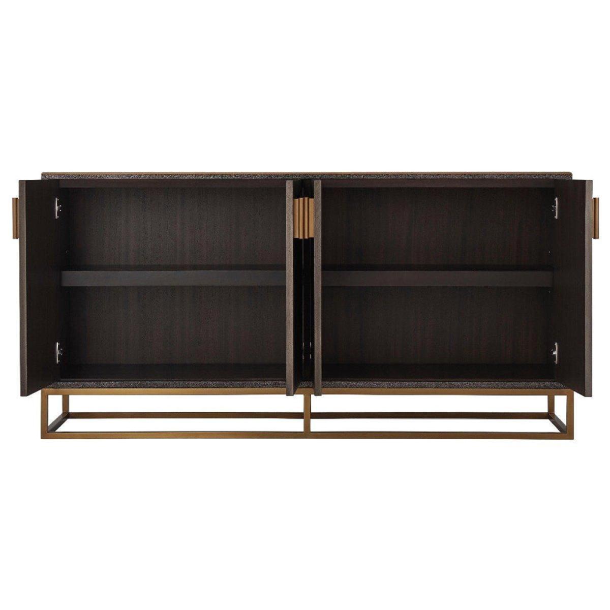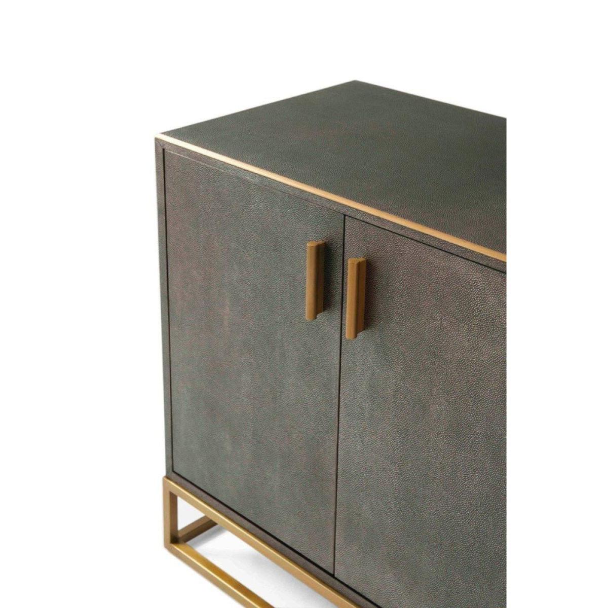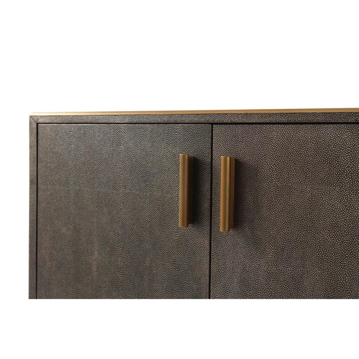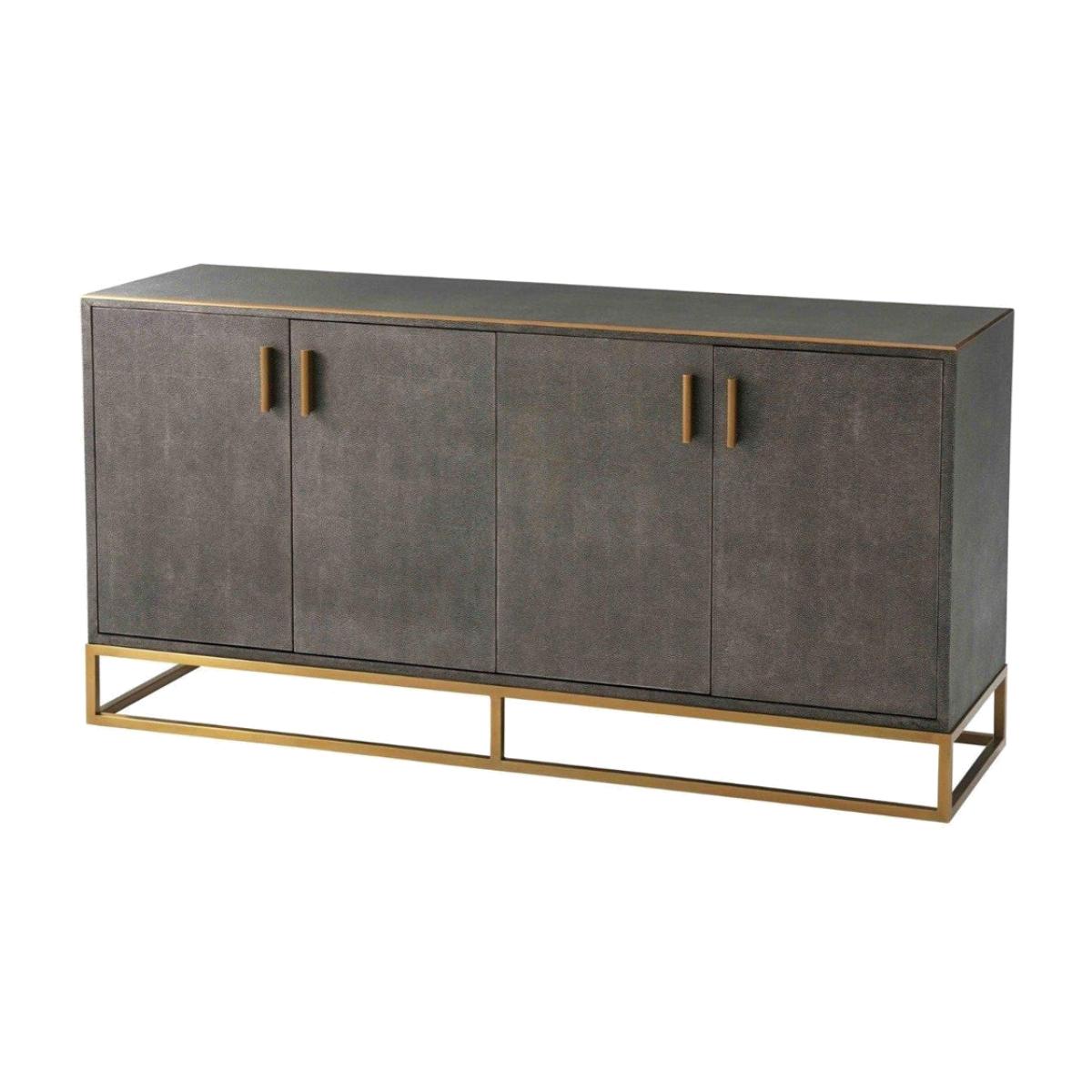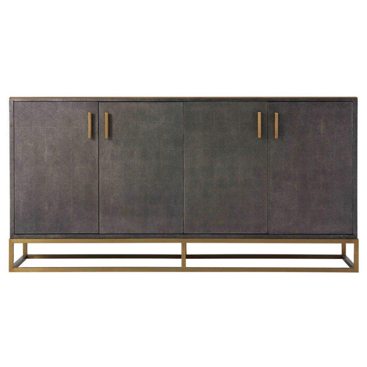 This gorgeous shagreen and brass double cabinet from the TA Studio Theodore Alexander Collection could be the solution to all your storage needs. This is a great piece of furniture for storing linens or clothing in the bedroom or towels in the bathroom or eating in your dining room. There is plenty of room inside to store whatever you decide on, and it also features a long wide top which creates a display point for photographs, ornaments or even a television set. The shagreen makes the cabinet look traditional and reliable, and this is contrasted wonderfully with the modern gold-coloured brass accents and base that bring this stylish piece up to date. *Moot Trading Ltd is not a lender and acts only as an introducer. The credit product is provided by Klarna Bank AB (publ). Credit is only available to permanent UK residents aged 18 and over, subject to status. Terms and conditions apply. Please note that the following products are not regulated by the FCA: Pay in 30 days and Pay in 3 instalments. Read More.
