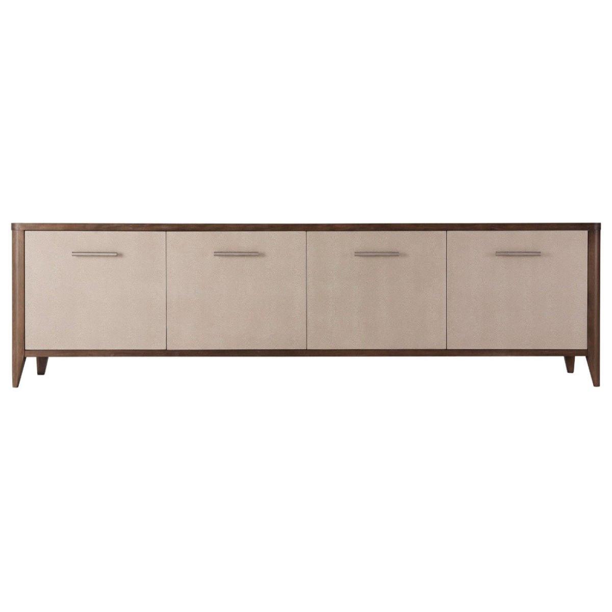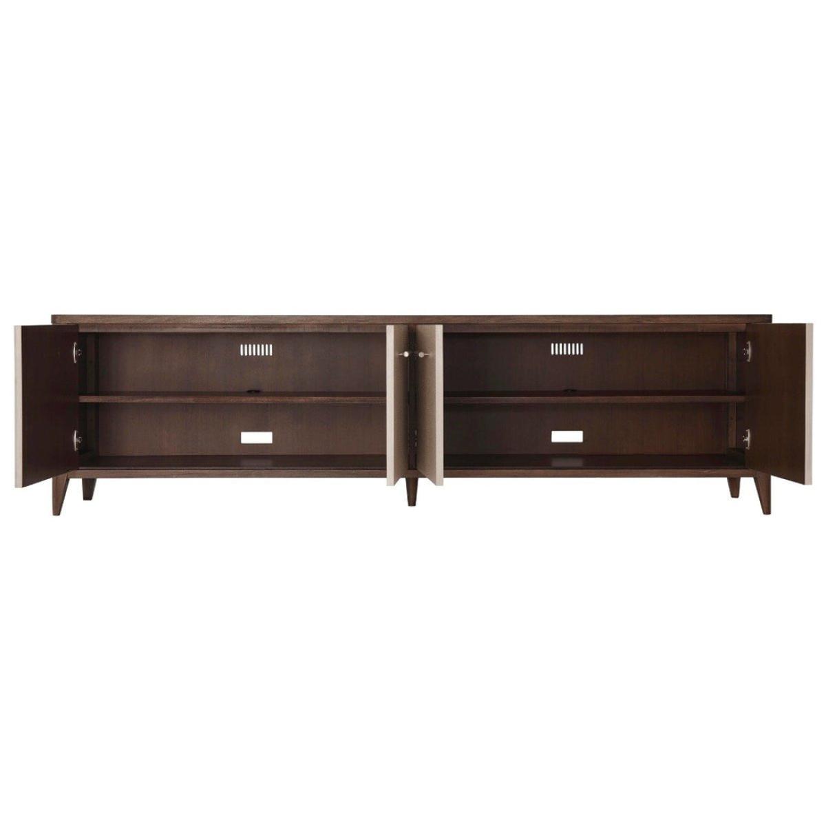 Mangrove wood finish The TA Studio large Media Unit Creswick in Mangrove will supply interior schemes with a subtle, luxurious influence. The mellow colourway softly corresponds with the pared-back style of a contemporary living room or entertainment area. The unit has four sizable cabinets with shelves inside to house all necessary media consoles and entertainment accessories (along with wire management).