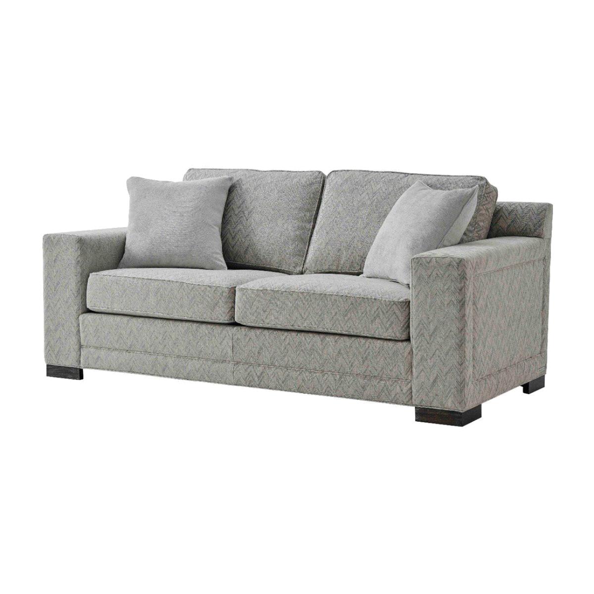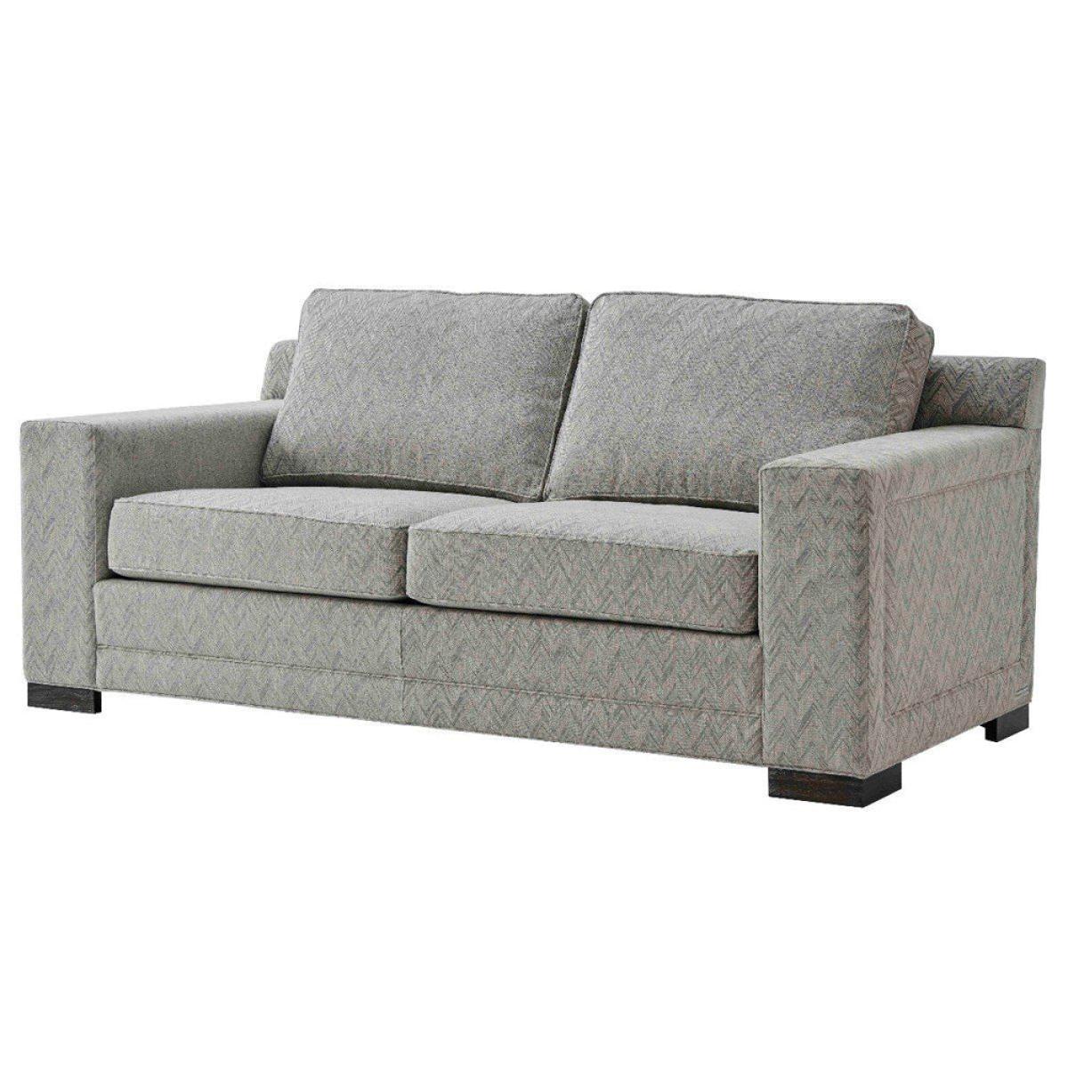 The medium Ravenswood sofa from TA Studio by Theodore Alexander combines clean contemporary lines with sumptuous cushions that are easy to remove for cleaning. Their on-trend grey hue makes the Rav. View More. The medium Ravenswood sofa from TA Studio by Theodore Alexander combines clean contemporary lines with sumptuous cushions that are easy to remove for cleaning. Their on-trend grey hue makes the Ravenswood very easy to style with almost any existing room design and colour scheme. The fabric has an eye-catching chevron pattern that TA Studio by Theodore Alexander call Wharton Pebble and it is artfully paired with additional scatter cushions in soft Dolce Magnesium. The result is both visually tasteful and invitingly comfortable. The Ravenswood sofa accommodates two comfortably at 200cm in length and 96. 5cm deep. The overall height is 91. 4cm. Matching arm chairs and three seaters are also available.