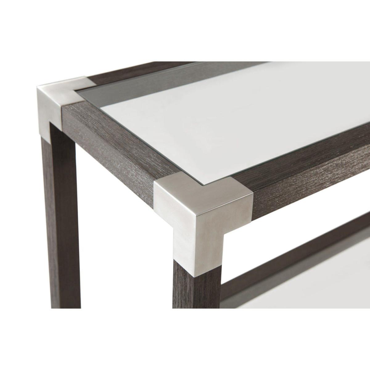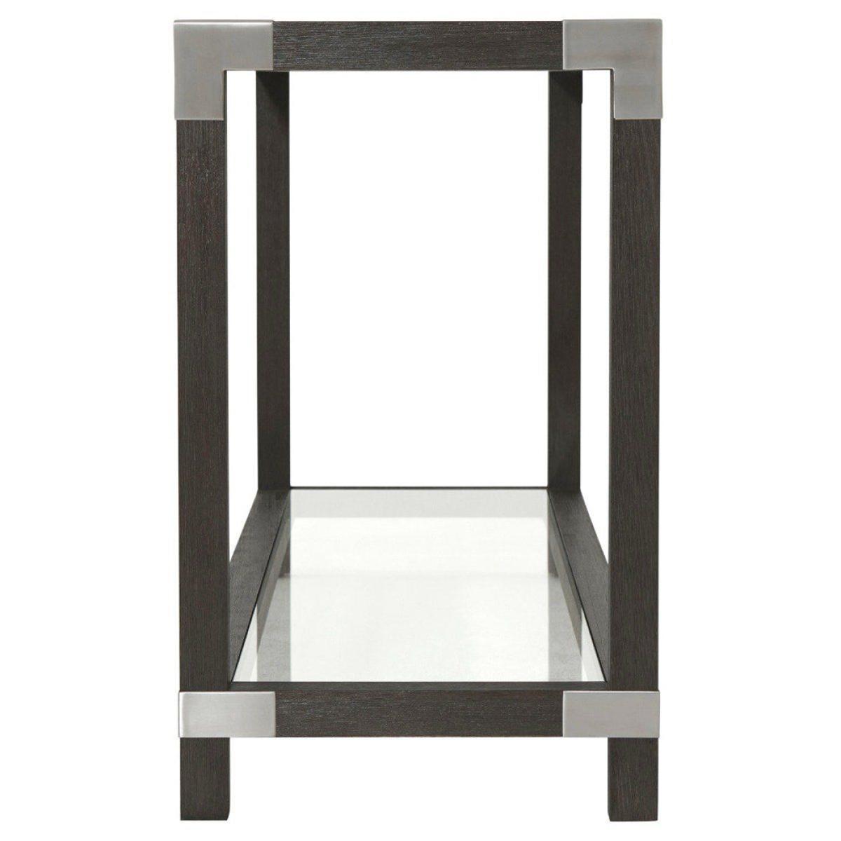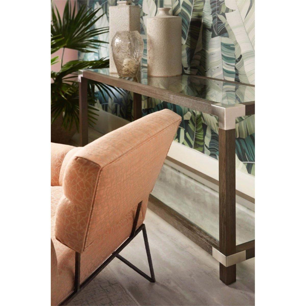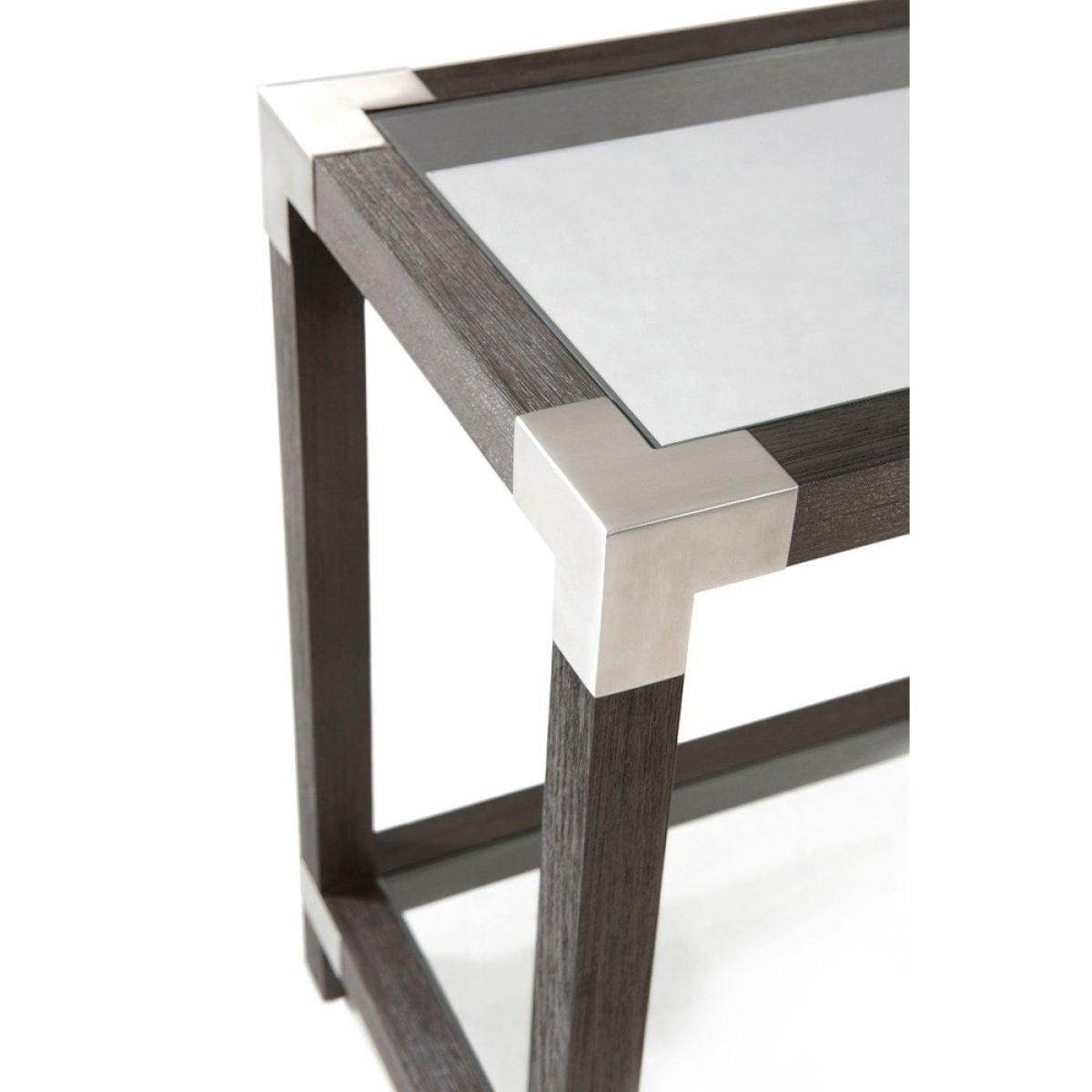 Sleek and sophisticated, the TA Studio by Theodore Alexander Urbana Console Table is the perfect choice for a narrow hallway or for whenever you want a smaller living room to feel more spacious. The beech frame is strong and earthy, but the anise colouring and glass top add a more modern twist with clean and open lines to keep the minimalist feel. The brushed nickel at the corners makes for some stylish highlights. It's also practical, with both the upper surface and a lower shelf for standing a range of objects. This table is a model of sophistication for any modern home. *Moot Trading Ltd is not a lender and acts only as an introducer. The credit product is provided by Klarna Bank AB (publ). Credit is only available to permanent UK residents aged 18 and over, subject to status. Terms and conditions apply. Please note that the following products are not regulated by the FCA: Pay in 30 days and Pay in 3 instalments. Read More.