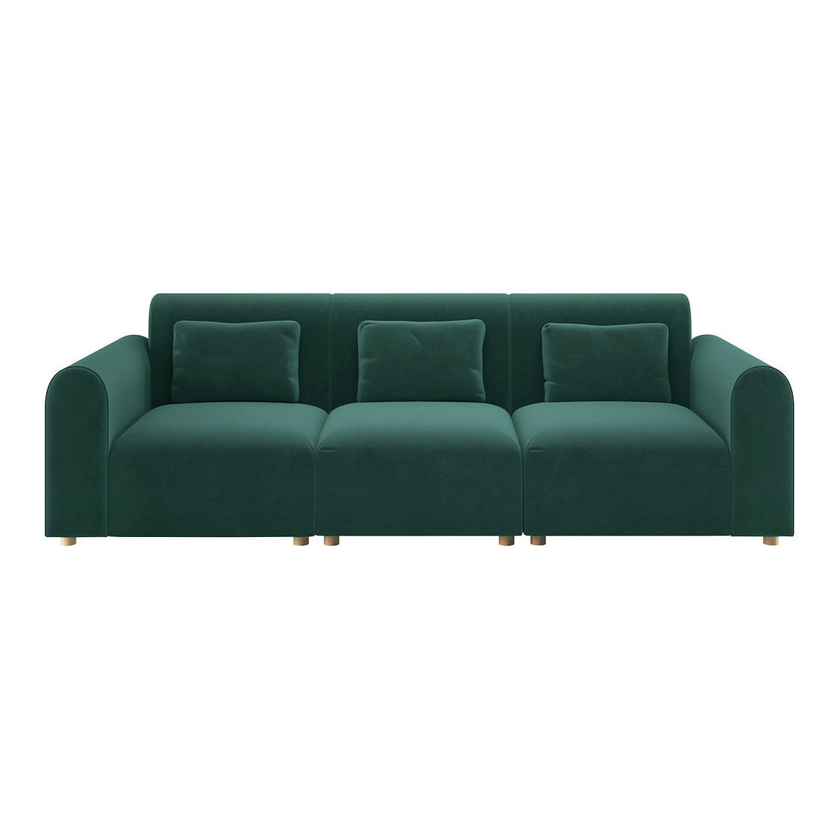 Our versatile Tab sofa has been cleverly designed with small and awkward access spaces in mind. Its modular, small footprint construction means you can build it up to the exact shape and size you require, and easily adapt this over time by adding or removing its modular pieces. Created in the Habitat design studio and made in Europe, it has a squared shape with smoothed corners and offers the upmost comfort with its deep seat design, foam filled seat cushions and smaller scatter cushions on top. The sofa is stylishly finished with low beech feet. Upholstered in our easy velvet fabric which is super durable and spill-resistant, it’s perfect for busy homes. Mix and match with the other Tab modular pieces, which include a useful storage footstool. Before purchasing be sure to read our Sofa Measuring Guide to ensure this sofa will fit into your home. Once delivered to you, remember to plump and rotate your cushions regularly to keep your sofa looking its best.
