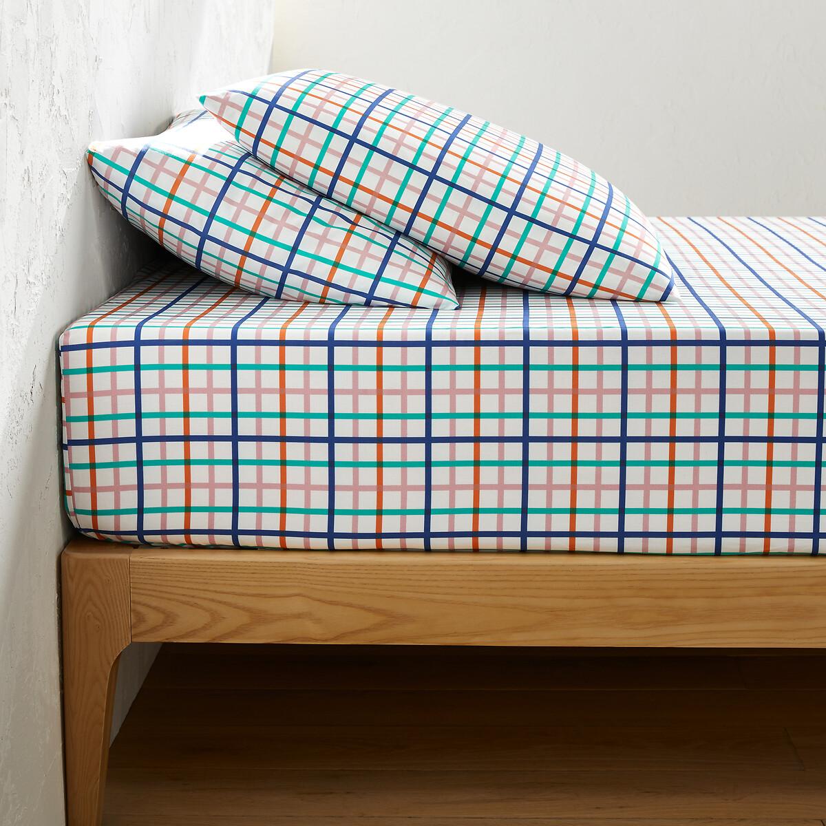 An ultra graphic and vibrant design, where geometric shapes and stripes harmonise in an abstract pattern. Red Tabaka, check Tabaka... contemporary sets to mix and match as desired. Designed by La Redoute Interiors. Cotton is part of our daily lives. We love it for its suppleness and softness. Easy Care, it is ideal for the beds of young and old alike!Product Details • 100% cotton • 50% virgin cotton, 50% recycled coton • Check print • 144 thread count • Flap height 30cm for thick mattresses. Match this item with the rest of the bedding in the range for a stylish bedroom. And you can mix and match it with different colours and styles from our other bedding ranges when you want to change things up and create your own unique look. Care Advice • Machine washable at 40°CSizes • 90 x 190cm : Single • 140 x 190cm: Double • 160 x 200cm :King • 180 x 200cm : Super King • Recycled cotton. Using recycled cotton is all about conserving resources and reducing waste. • OEKO-TEX® Standard 100. Standard 100 certification by OEKO-TEX® tests textile products for harmful substances via an independent, international label.