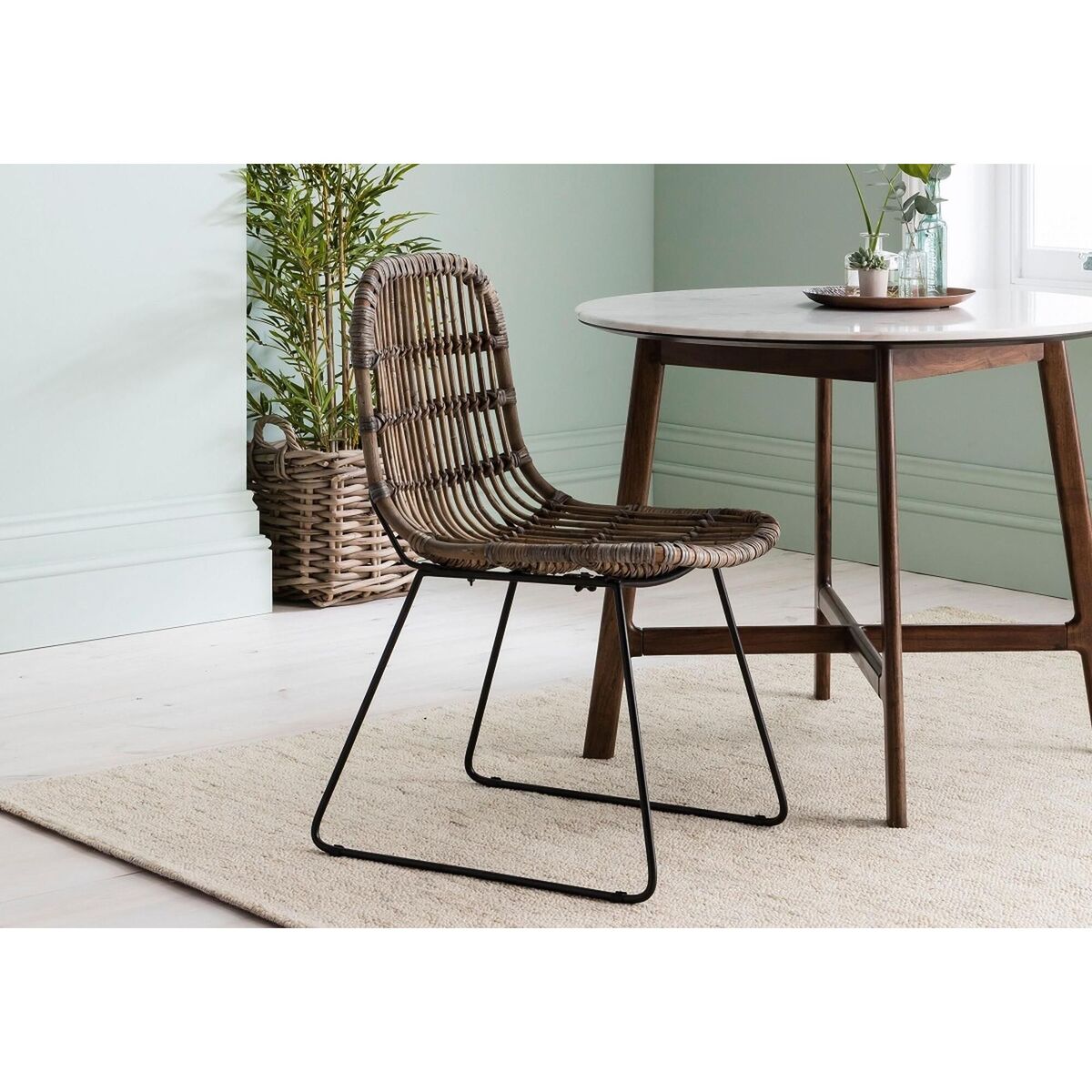 I love this set of two because the rattan and stained finish give it a relaxed, natural vibe that works well in both coastal and shabby-chic interiors. It’s a versatile piece that adds warmth and texture, making it perfect for informal dining spaces, breakfast nooks, or even as occasional chairs in a living area. To style, consider pairing them with a neutral or patterned table and adding soft textiles like cushions or throws for extra comfort. These chairs work brilliantly in light-filled spaces, especially when combined with earthy tones or muted palettes, and they lend themselves to layered, layered decor schemes with greenery or woven accessories to enhance their organic appeal.