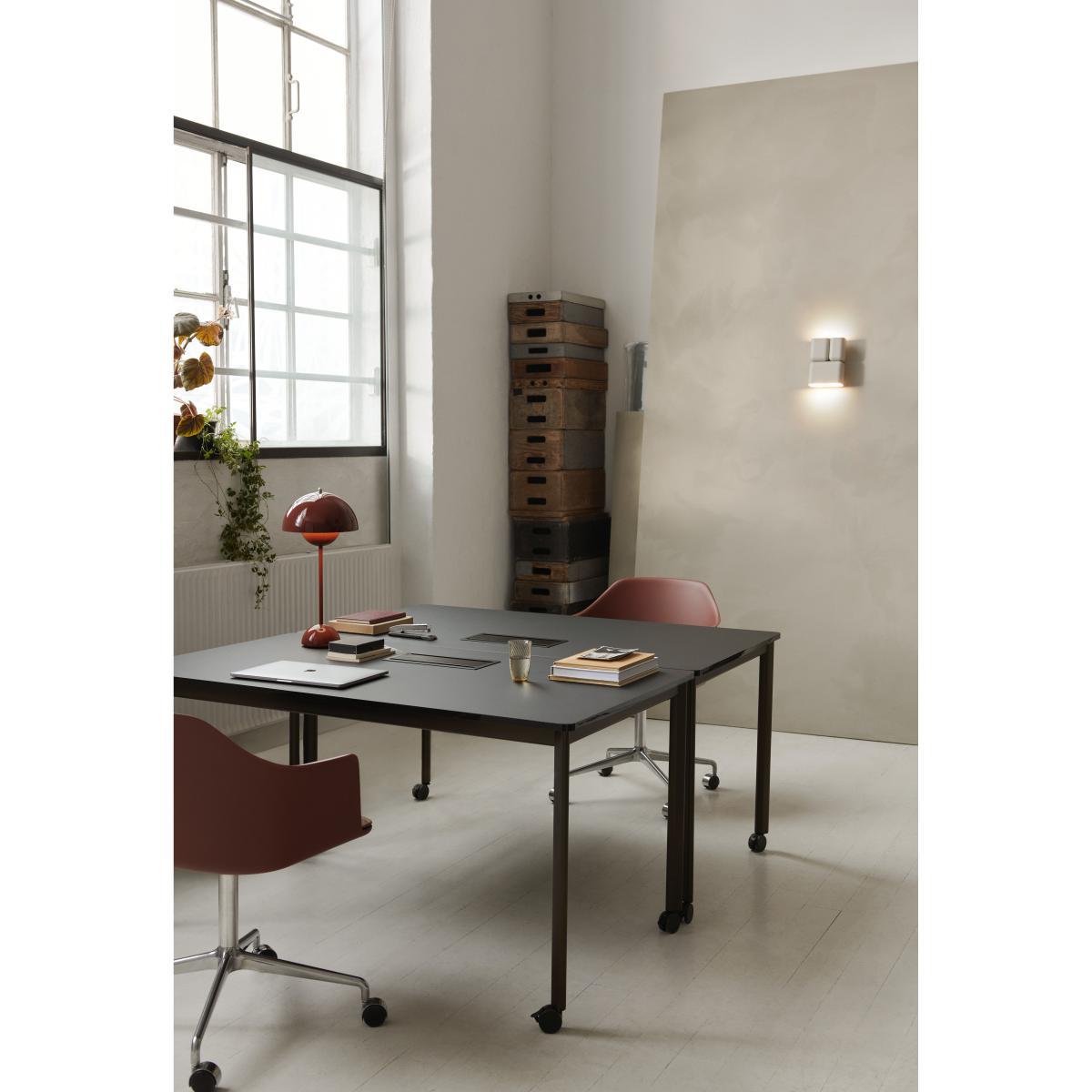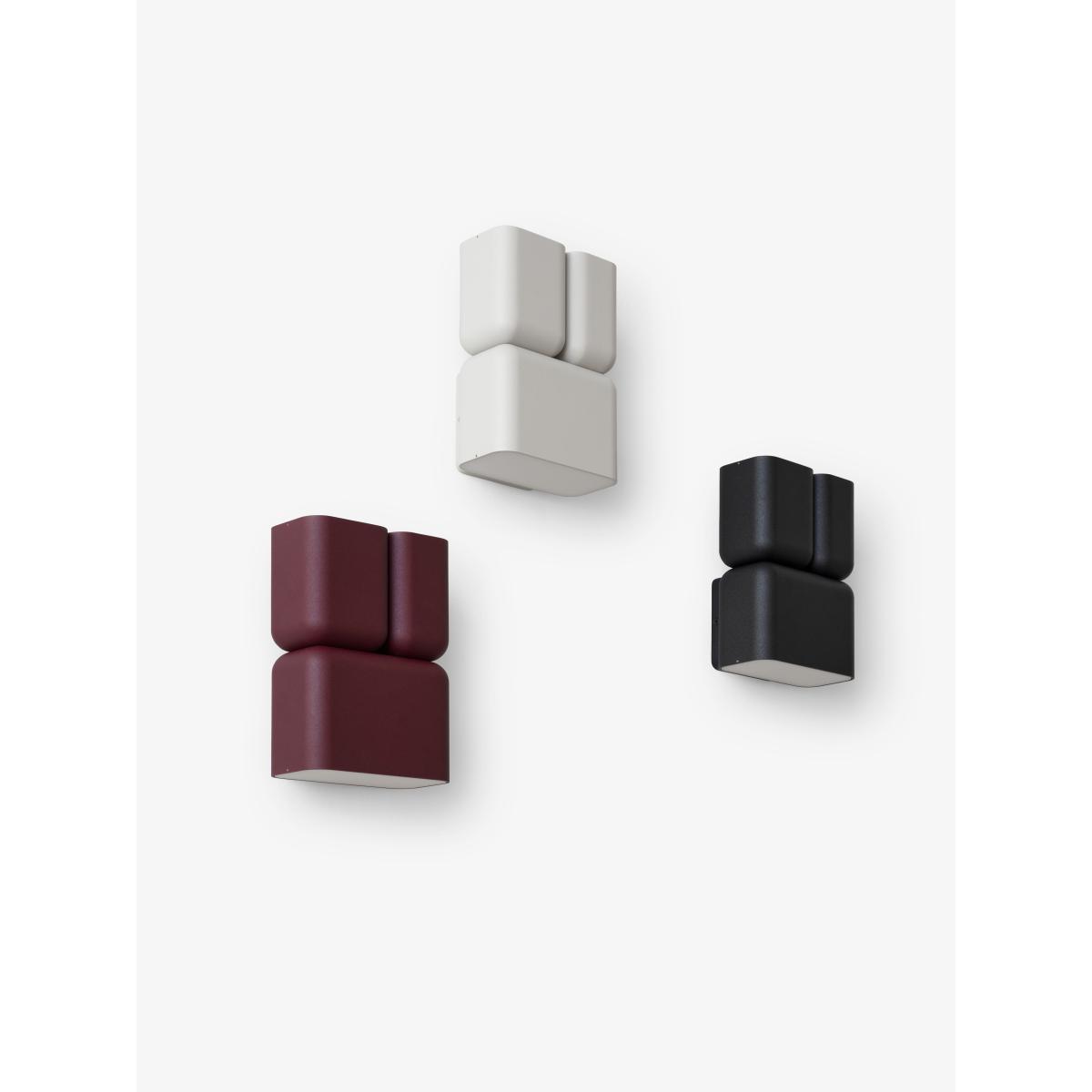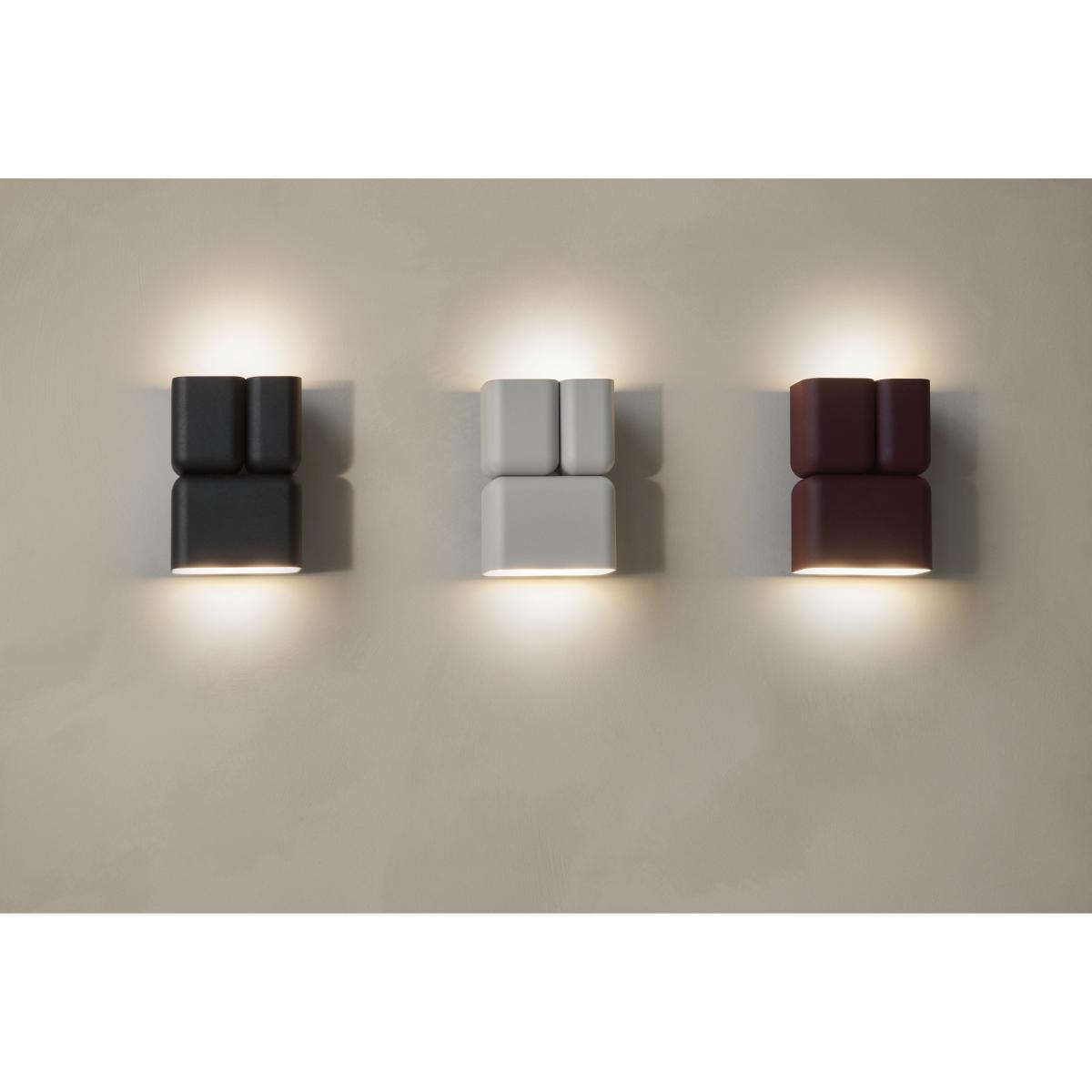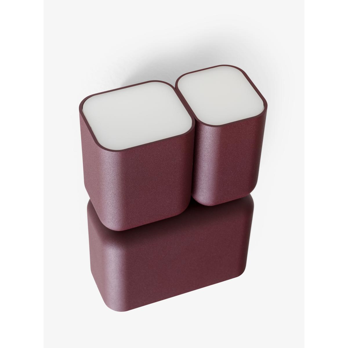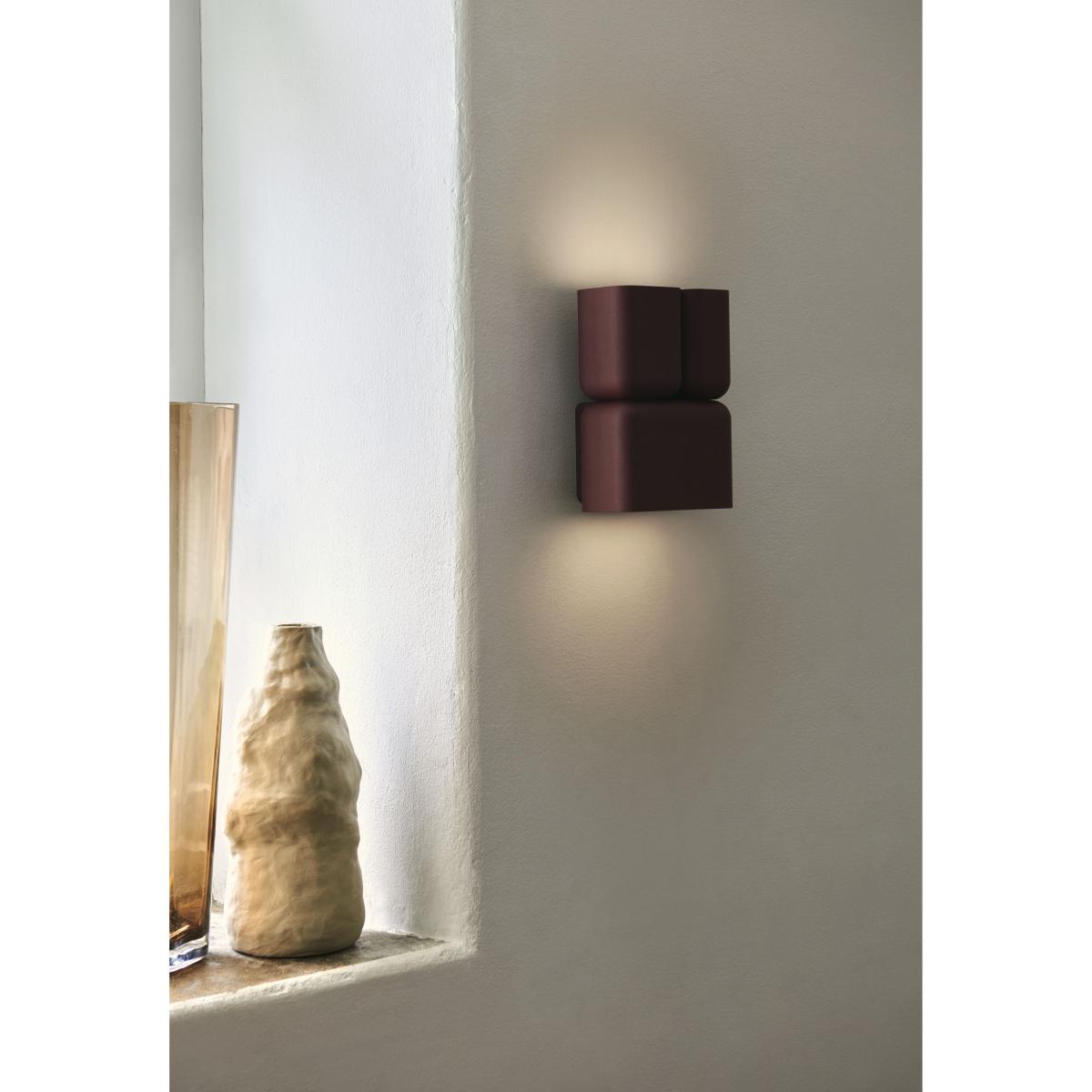 Composed of an assembly of geometric shapes, this small wall lamp in cast aluminium combines an industrial aesthetic with a warm light. The three interconnected metallic modules diffuse the light upwards and downwards. The textured matt finish is very elegant.