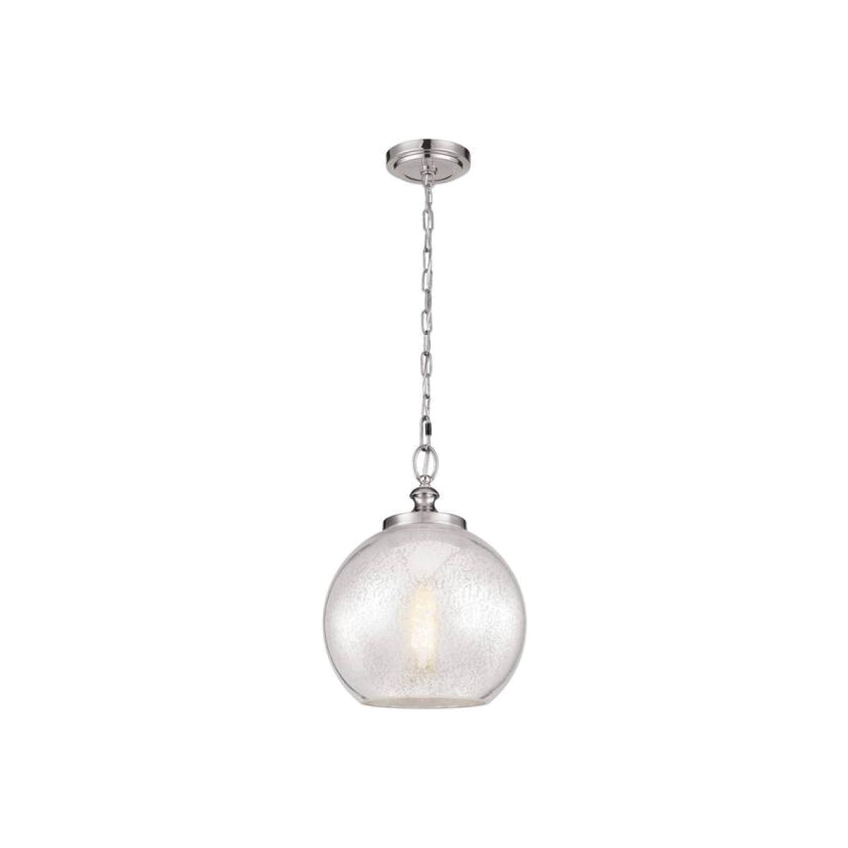 Marrying an elegant spherical silhouette with the on- trend look of exposed lamping, this chain ceiling pendant gives an all-together modern yet classic look. A silver leaf technique is used to produce a true silver Mercury glass effect. The spun socket cup adds an extra special detail in the transition from the glass shade to the bulb. Finished in brushed steel.