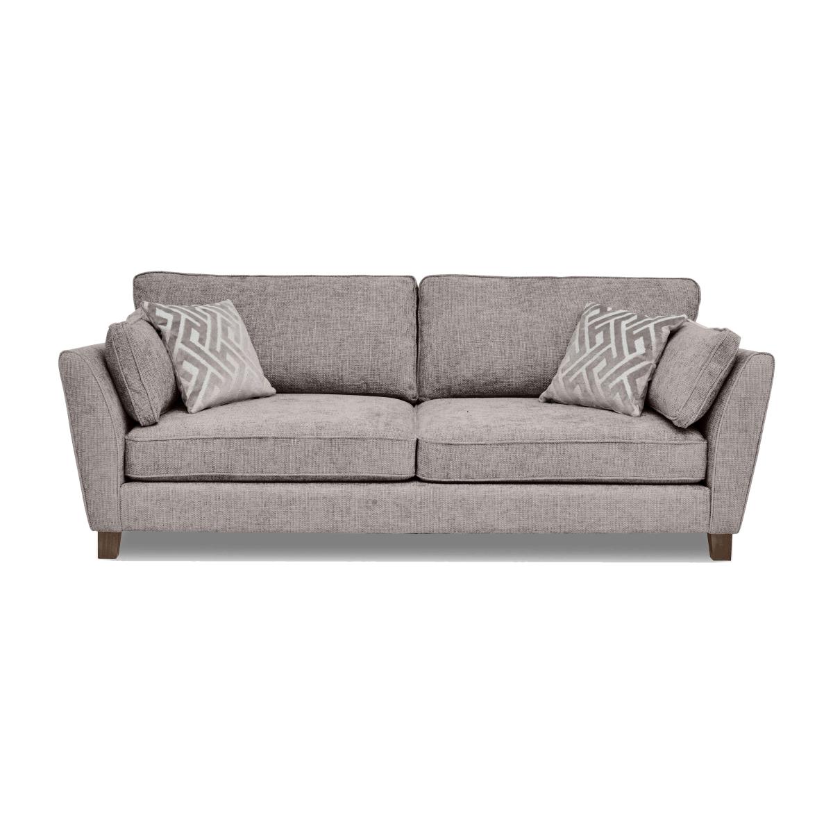 Effortless style meets easy comfort in our Tabitha collection of sofas, chairs, sofa beds and footstools. The look is elegant and timeless with gently curved arms, walnut-finished wood feet and super-soft chenille fabric upholstery. And it couldn't be easier to get comfortable thanks to Tabitha’s generous proportions, incredible foam and fibre cushioning, feather-filled arm bolsters and complimentary scatter cushions. You’ll also find some very appealing hidden features. Sofas and chairs are sprung for maximum comfort, sofa beds feature pocket sprung Hypnos mattresses, seat and back cushions are fully reversible and there's even a footstool with storage. The Tabitha collection is handmade in the UK exclusively for Furniture Village. Upholstered in super-soft textured chenille and with elegantly curved arms, our Tabitha four-seater sofa is as stylish as it is comfortable. Handmade and only at Furniture Village. Why you'll love it Effortless style, easy comfort. Sprung seats, luxurious cushioning and feather-filled arm bolsters. Super-soft chenille upholstery with a cosy waffle-effect texture. Elegant curved arms and walnut-finished wood feet. Comes with 2 free feather-filled coordinating scatter cushions. Made to last with reversible seat and back cushions. Handmade in the UK. Only at Furniture Village. This 4-seater sofa is part of our Tabitha range. What you need to know Medium comfort level. Seat suspension: sinuous zig-zag springs. Seat cushioning: foam with fibre, Dacron wrap. Back suspension: webbing. Back cushioning: fibre. Arm bolsters: feather. Scatter cushions: feather. Removable back and feet. Plump and dress back cushions and scatter cushions daily. Flattening and shading of heavy wear areas on pile fabrics is unavoidable. Clean regularly using a soft brush or vacuum with the curtain attachment. Deal with any spills promptly. Professional cleaning advised for oil- and grease-based stains. Please read our upholstery care guide for more advice.