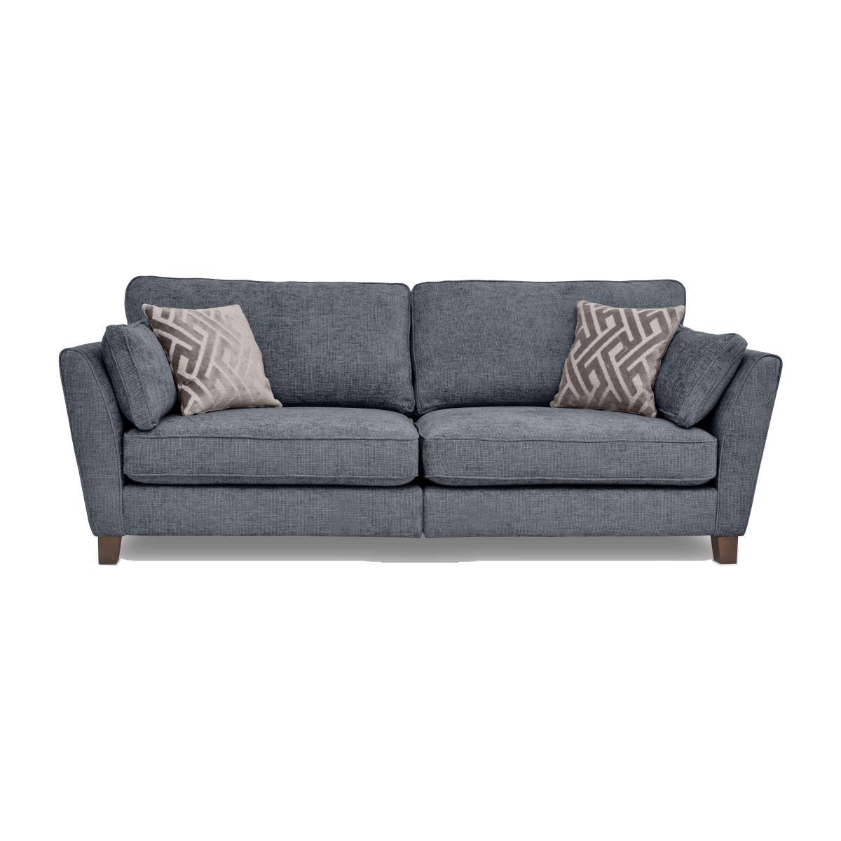 Effortless style meets easy comfort in our Tabitha collection of sofas, chairs, sofa beds and footstools. The look is elegant and timeless with gently curved arms, walnut-finished wood feet and super-soft chenille fabric upholstery. And it couldn't be easier to get comfortable thanks to Tabitha’s generous proportions, incredible foam and fibre cushioning, feather-filled arm bolsters and complimentary scatter cushions. You’ll also find some very appealing hidden features. Sofas and chairs are sprung for maximum comfort, sofa beds feature pocket sprung Hypnos mattresses, seat and back cushions are fully reversible and there's even a footstool with storage. The Tabitha collection is handmade in the UK exclusively for Furniture Village. The perfect combination of style and comfort, our Tabitha four-seater sofa is elegant and inviting. The split frame makes it easier to bring home. Only at Furniture Village. Why you'll love it Effortless style, easy comfort. Sprung seats, luxurious cushioning and feather-filled arm bolsters. Super-soft chenille upholstery with a cosy waffle-effect texture. Elegant curved arms and walnut-finished wood feet. Comes with 2 free feather-filled coordinating scatter cushions. Made to last with reversible seat and back cushions. This large sofa has a split frame so it’s easier to bring home. Handmade in the UK. Only at Furniture Village. This 4-seater sofa is part of our Tabitha range. What you need to know Medium comfort level. Seat suspension: sinuous zig-zag springs. Seat cushioning: foam with fibre, Dacron wrap. Back suspension: webbing. Back cushioning: fibre. Arm bolsters: feather. Scatter cushions: feather. Removable back and feet. Plump and dress back cushions and scatter cushions daily. Flattening and shading of heavy wear areas on pile fabrics is unavoidable. Clean regularly using a soft brush or vacuum with the curtain attachment. Deal with any spills promptly. Professional cleaning advised for oil- and grease-based stains. Please read our upholstery care guide for more advice.