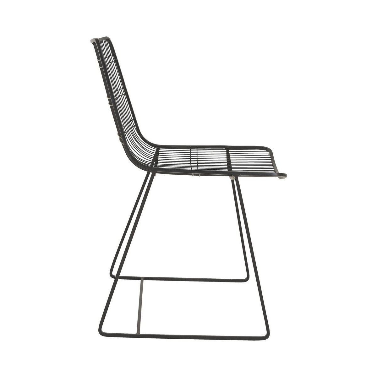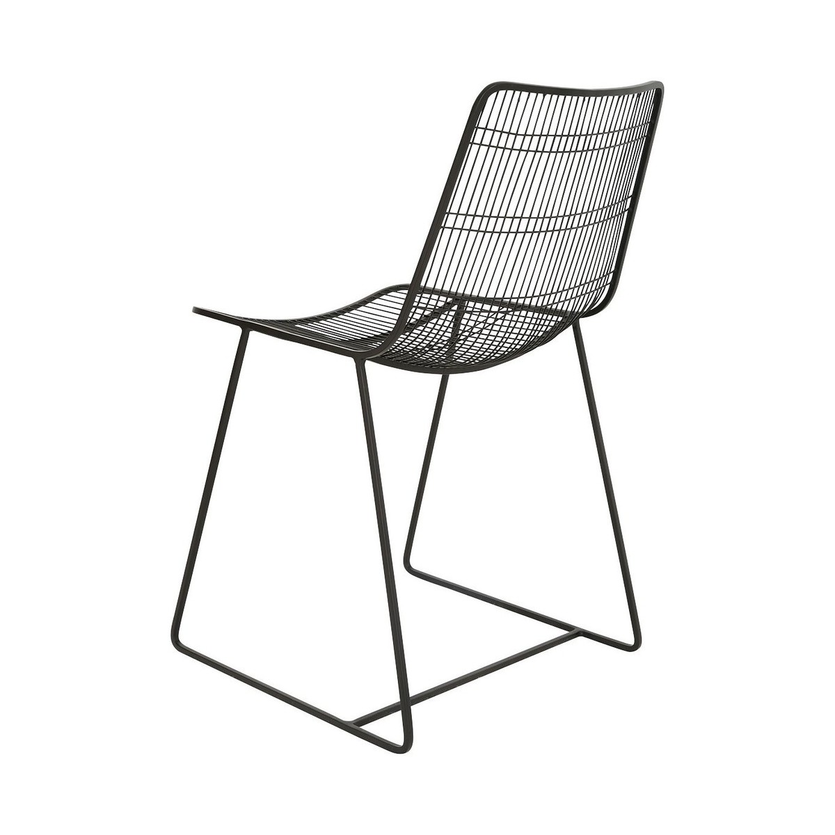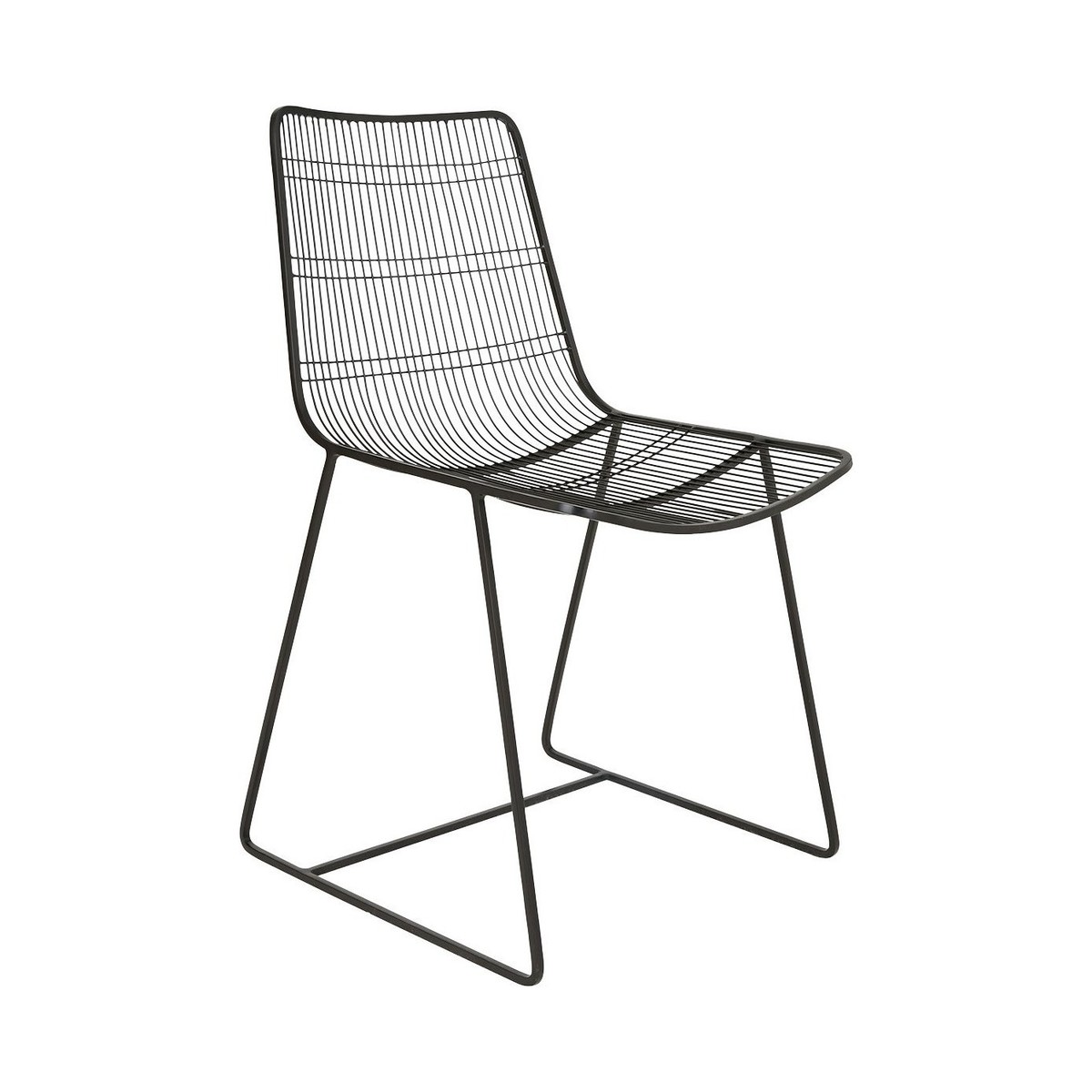 The Tabitha black wire dining chair has a graphic, linear pattern and combines ski legs with a gently curved shape for a long, comfortable sit.;Handcrafted in India and exclusive to Habitat, the contemporary chair is also available in a gold finish and complements wood, metal or glass dining tables, while making a striking, standalone piece, too.