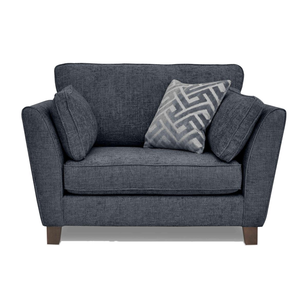 Effortless style meets easy comfort in our Tabitha collection of sofas, chairs, sofa beds and footstools. The look is elegant and timeless with gently curved arms, walnut-finished wood feet and super-soft chenille fabric upholstery. And it couldn't be easier to get comfortable thanks to Tabitha’s generous proportions, incredible foam and fibre cushioning, feather-filled arm bolsters and complimentary scatter cushions. You’ll also find some very appealing hidden features. Sofas and chairs are sprung for maximum comfort, sofa beds feature pocket sprung Hypnos mattresses, seat and back cushions are fully reversible and there's even a footstool with storage. The Tabitha collection is handmade in the UK exclusively for Furniture Village. This aptly named snuggler chair is made for comfort. Snuggle up with a friend or lounge in solitary comfort. Handmade and only at Furniture Village. Why you'll love it Effortless style, easy comfort. Sprung seat, luxurious cushioning and feather-filled arm bolsters. Super-soft chenille upholstery with a cosy waffle-effect texture. Elegant curved arms and walnut-finished wood feet. Comes with a free feather-filled coordinating scatter cushion. Made to last with reversible seat and back cushions. Handmade in the UK. Only at Furniture Village. This snuggler chair is part of our Tabitha range. What you need to know Medium comfort level. Seat suspension: sinuous zig-zag springs. Seat cushioning: foam with fibre, Dacron wrap. Back suspension: webbing. Back cushioning: fibre. Arm bolsters: feather. Scatter cushion: feather. Removable back and feet. Plump and dress back cushions and scatter cushions daily. Flattening and shading of heavy wear areas on pile fabrics is unavoidable. Clean regularly using a soft brush or vacuum with the curtain attachment. Deal with any spills promptly. Professional cleaning advised for oil- and grease-based stains. Please read our upholstery care guide for more advice.