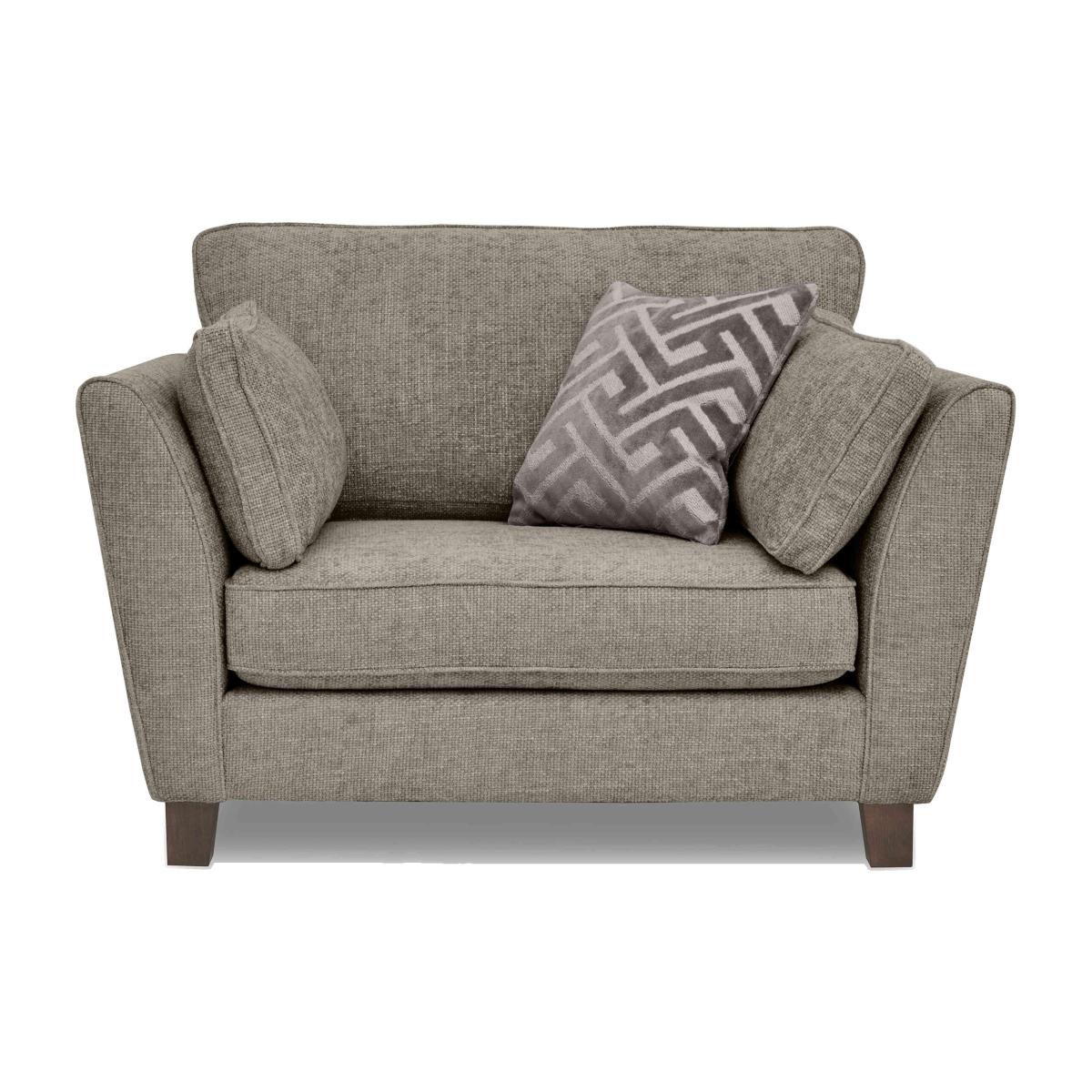 Effortless style meets easy comfort in our Tabitha collection of sofas, chairs, sofa beds and footstools. The look is elegant and timeless with gently curved arms, walnut-finished wood feet and super-soft chenille fabric upholstery. And it couldn't be easier to get comfortable thanks to Tabitha’s generous proportions, incredible foam and fibre cushioning, feather-filled arm bolsters and complimentary scatter cushions. You’ll also find some very appealing hidden features. Sofas and chairs are sprung for maximum comfort, sofa beds feature pocket sprung Hypnos mattresses, seat and back cushions are fully reversible and there's even a footstool with storage. The Tabitha collection is handmade in the UK exclusively for Furniture Village. This aptly named snuggler chair is made for comfort. Snuggle up with a friend or lounge in solitary comfort. Handmade and only at Furniture Village. Why you'll love it Effortless style, easy comfort. Sprung seat, luxurious cushioning and feather-filled arm bolsters. Super-soft chenille upholstery with a cosy waffle-effect texture. Elegant curved arms and walnut-finished wood feet. Comes with a free feather-filled coordinating scatter cushion. Made to last with reversible seat and back cushions. Handmade in the UK. Only at Furniture Village. This snuggler chair is part of our Tabitha range. What you need to know Medium comfort level. Seat suspension: sinuous zig-zag springs. Seat cushioning: foam with fibre, Dacron wrap. Back suspension: webbing. Back cushioning: fibre. Arm bolsters: feather. Scatter cushion: feather. Removable back and feet. Plump and dress back cushions and scatter cushions daily. Flattening and shading of heavy wear areas on pile fabrics is unavoidable. Clean regularly using a soft brush or vacuum with the curtain attachment. Deal with any spills promptly. Professional cleaning advised for oil- and grease-based stains. Please read our upholstery care guide for more advice.