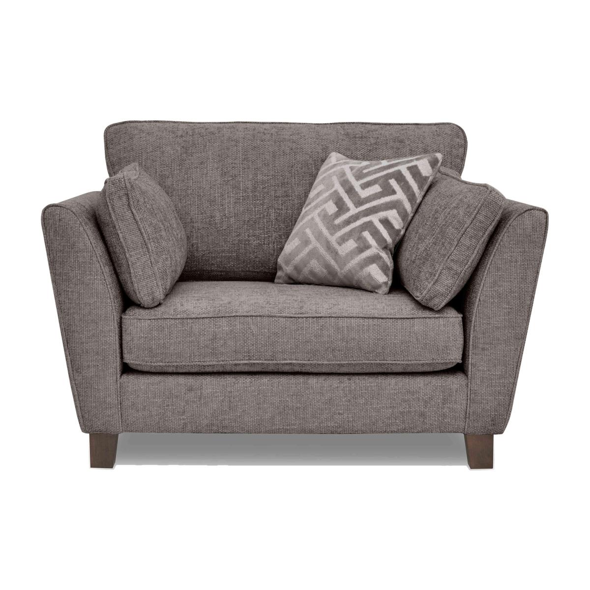 Effortless style meets easy comfort in our Tabitha collection of sofas, chairs, sofa beds and footstools. The look is elegant and timeless with gently curved arms, walnut-finished wood feet and super-soft chenille fabric upholstery. And it couldn't be easier to get comfortable thanks to Tabitha’s generous proportions, incredible foam and fibre cushioning, feather-filled arm bolsters and complimentary scatter cushions. You’ll also find some very appealing hidden features. Sofas and chairs are sprung for maximum comfort, sofa beds feature pocket sprung Hypnos mattresses, seat and back cushions are fully reversible and there's even a footstool with storage. The Tabitha collection is handmade in the UK exclusively for Furniture Village. This aptly named snuggler chair is made for comfort. Snuggle up with a friend or lounge in solitary comfort. Handmade and only at Furniture Village. Why you'll love it Effortless style, easy comfort. Sprung seat, luxurious cushioning and feather-filled arm bolsters. Super-soft chenille upholstery with a cosy waffle-effect texture. Elegant curved arms and walnut-finished wood feet. Comes with a free feather-filled coordinating scatter cushion. Made to last with reversible seat and back cushions. Handmade in the UK. Only at Furniture Village. This snuggler chair is part of our Tabitha range. What you need to know Medium comfort level. Seat suspension: sinuous zig-zag springs. Seat cushioning: foam with fibre, Dacron wrap. Back suspension: webbing. Back cushioning: fibre. Arm bolsters: feather. Scatter cushion: feather. Removable back and feet. Plump and dress back cushions and scatter cushions daily. Flattening and shading of heavy wear areas on pile fabrics is unavoidable. Clean regularly using a soft brush or vacuum with the curtain attachment. Deal with any spills promptly. Professional cleaning advised for oil- and grease-based stains. Please read our upholstery care guide for more advice.