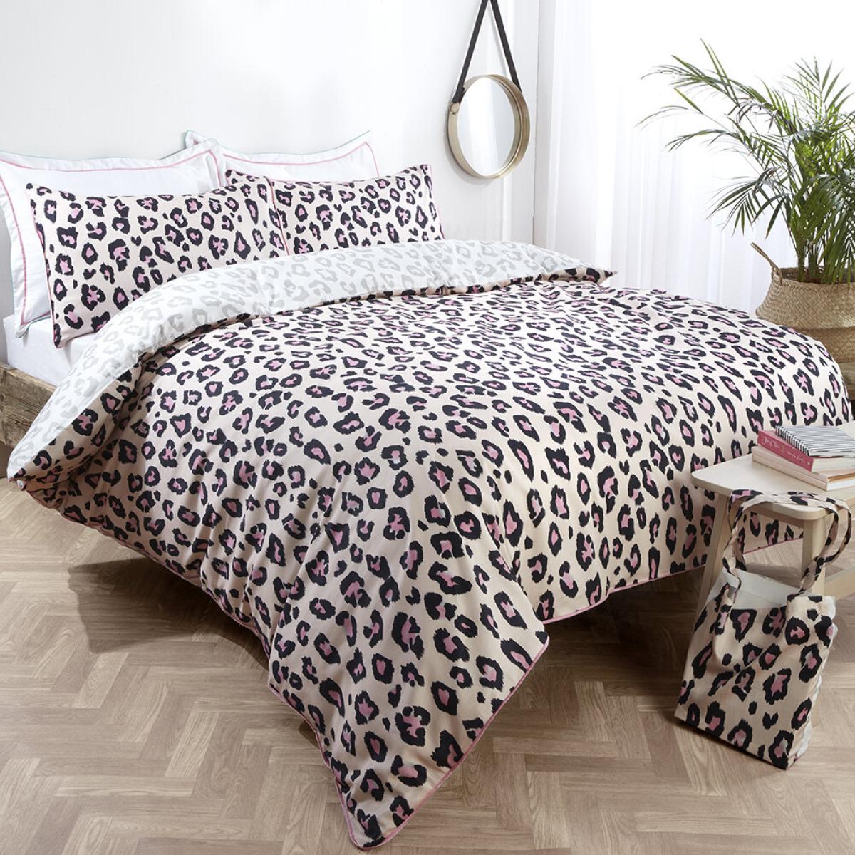 Go wild with this Snow Leopard duvet set from Tabitha Webb. Fashion designer, columnist, author, and now homeware designer, Tabitha has taken her passion for unique design to create beautiful bed linen in her signature style. Featuring a bold leopard print design in pink and black tones, this duvet set is made from 100% cotton sateen and has been finished with a contrasting grey and white reverse. Beautifully presented, the duvet set comes in a printed tote bag. Key features: * Super king duvet set * Material: 100% cotton sateen * Includes: * Super king duvet cover: 260x220cm * 2x pillowcases: 50x75cm * 300 thread count * Digitally printed * Leopard print design * Pink and black tones * Grey and white reverse
