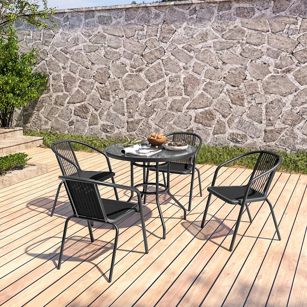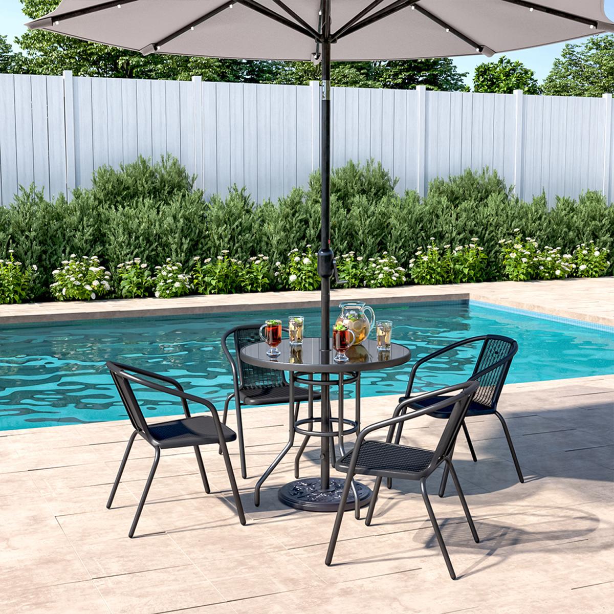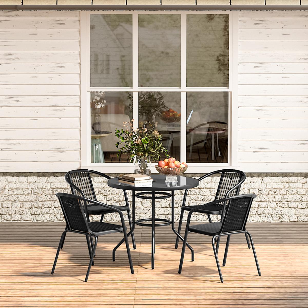 Table and Chair with Umbrella Hole Bistro Set - Black / 4 Chairs + 1 Table