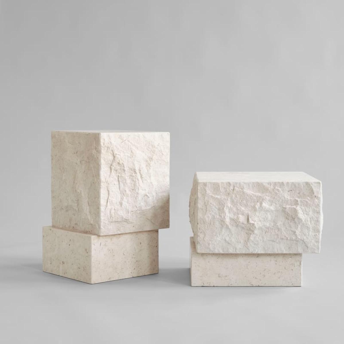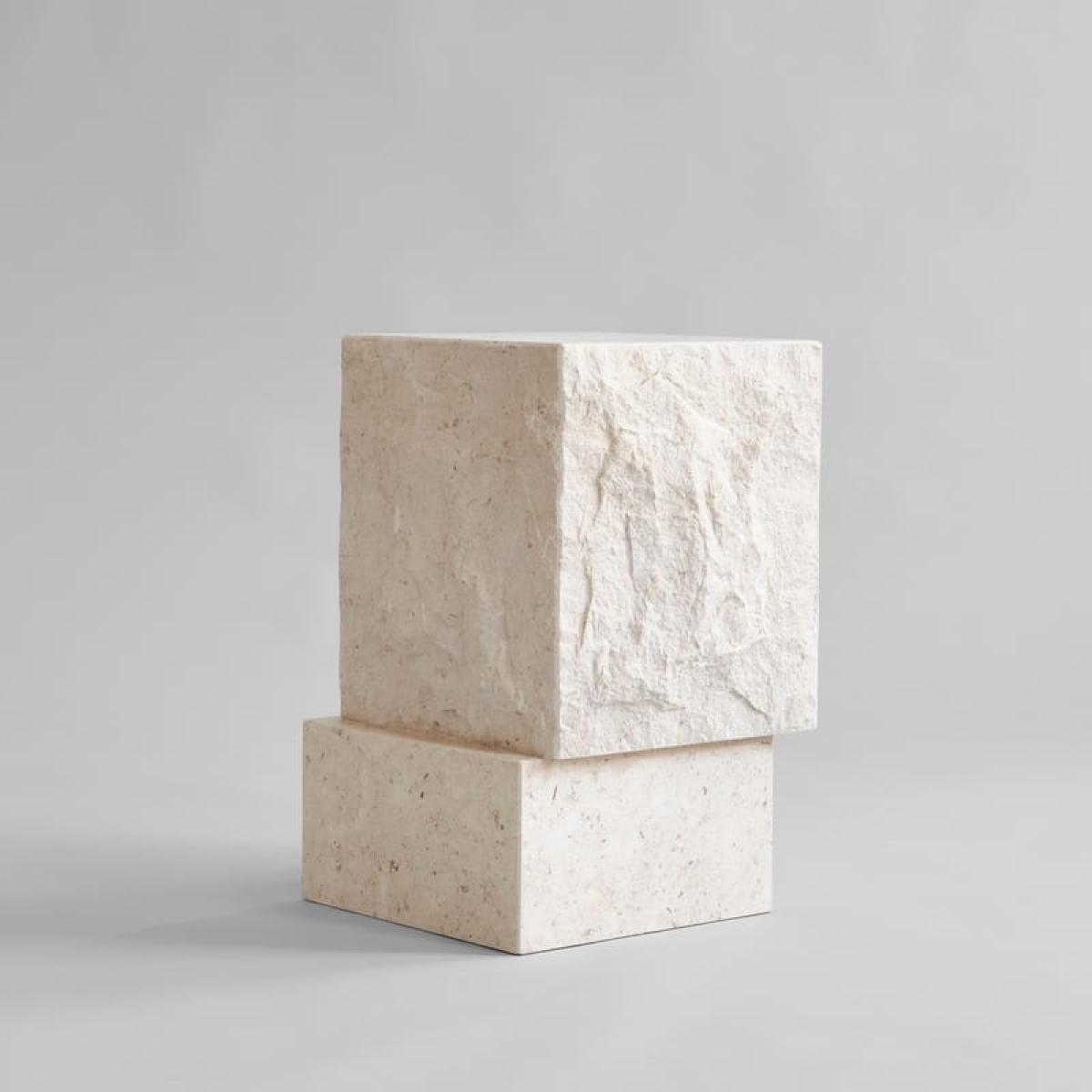 Table d'appoint Temple Tall pierre blanc / 33 x 32 x H 50 cm - Calcaire - 101 COPENHAGEN