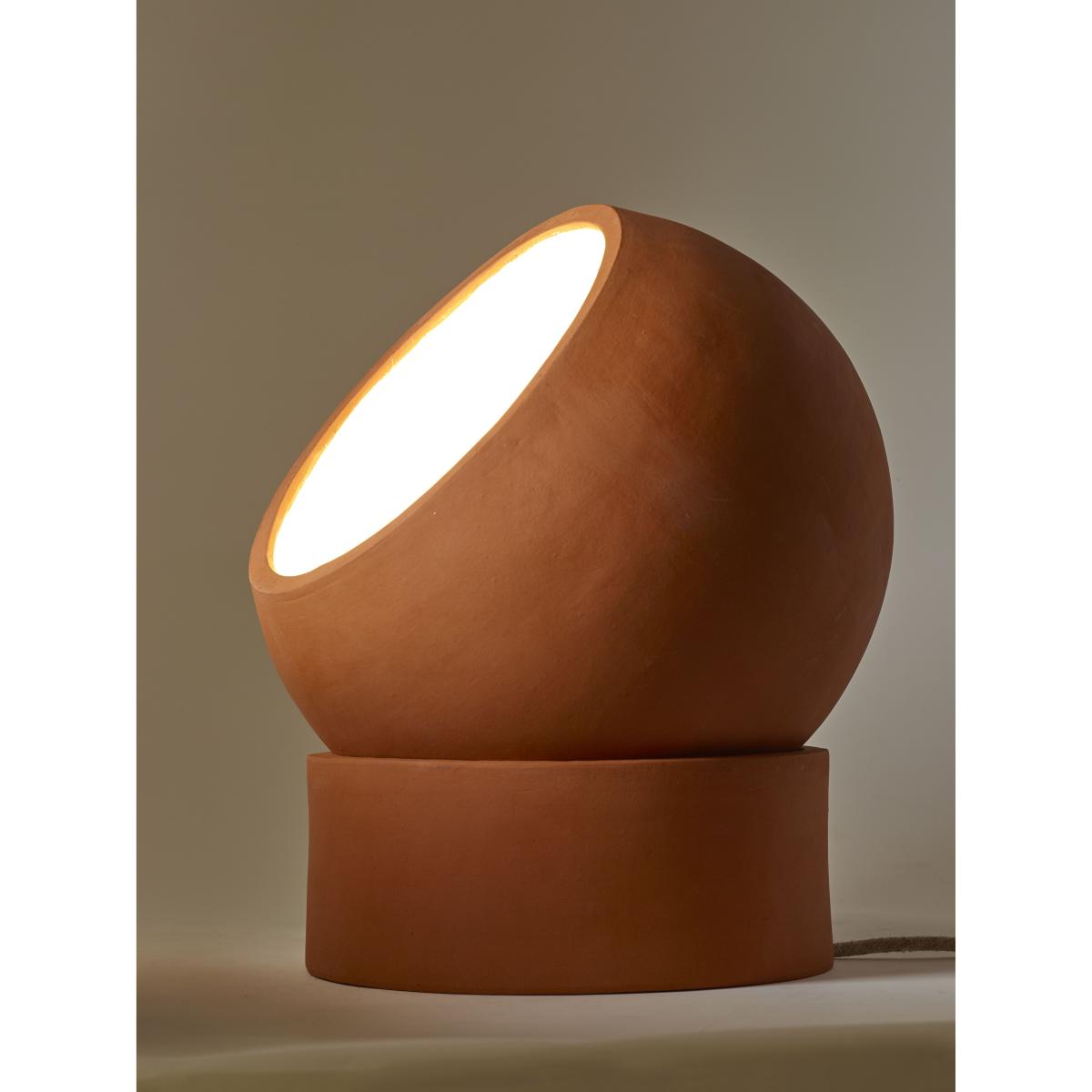 I love this lamp’s organic terracotta finish and versatile shape, making it a great addition to both modern and rustic interiors. Its rounded form and warm hue bring an earthy, grounding element that works well in cosy living rooms or bedroom schemes. The adjustable spotlight function adds a practical touch, allowing targeted lighting for reading or highlighting artwork. For styling tips, consider placing it on a sideboard or bedside table to add tactile interest, paired with natural textures like wood or linen for a harmonious look. Its size and design make it a subtle statement piece that enhances minimalistic or boho-inspired spaces without overwhelming them.