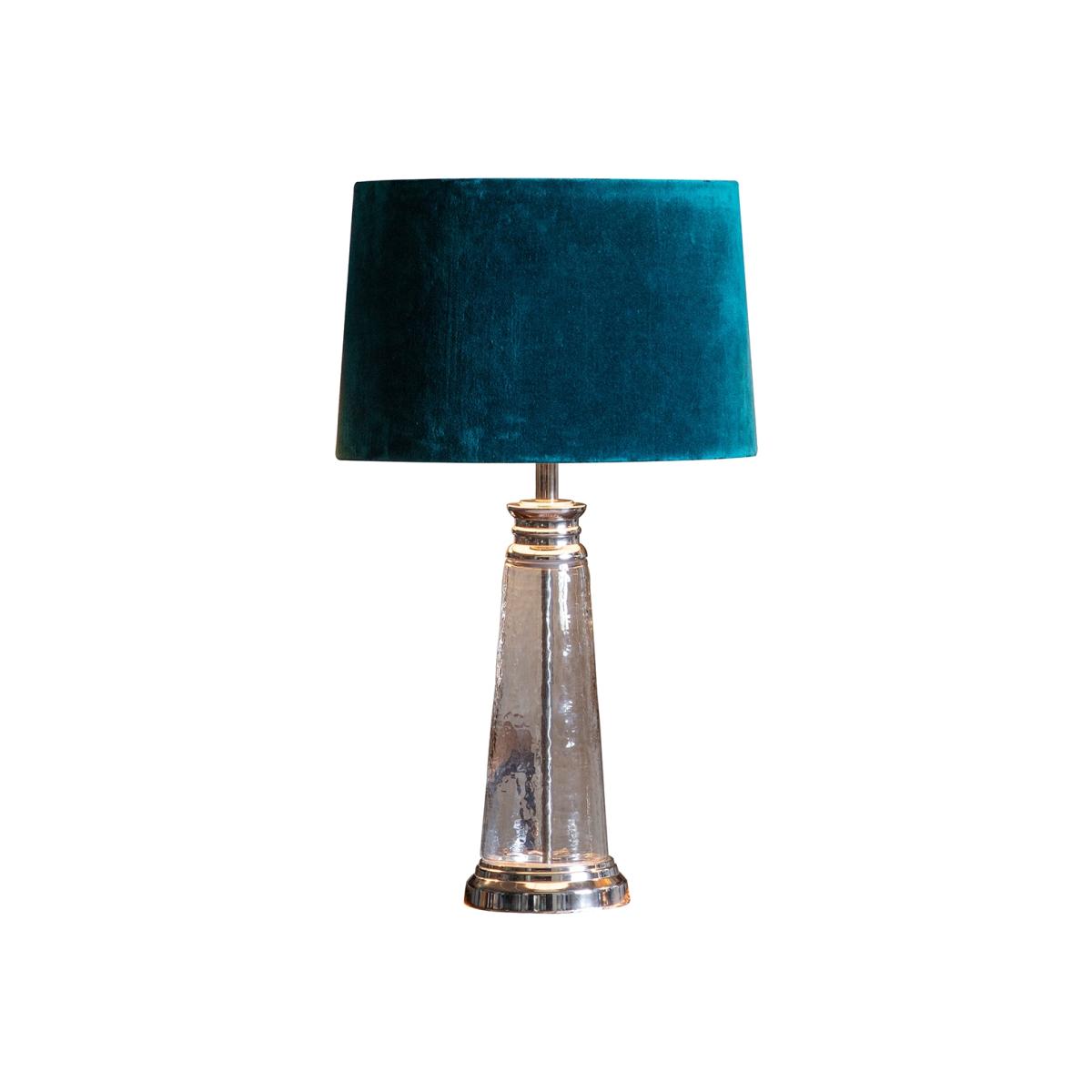 Table Lamp with Blue Velvet Shade & Frosted Glass Base - Caesaro