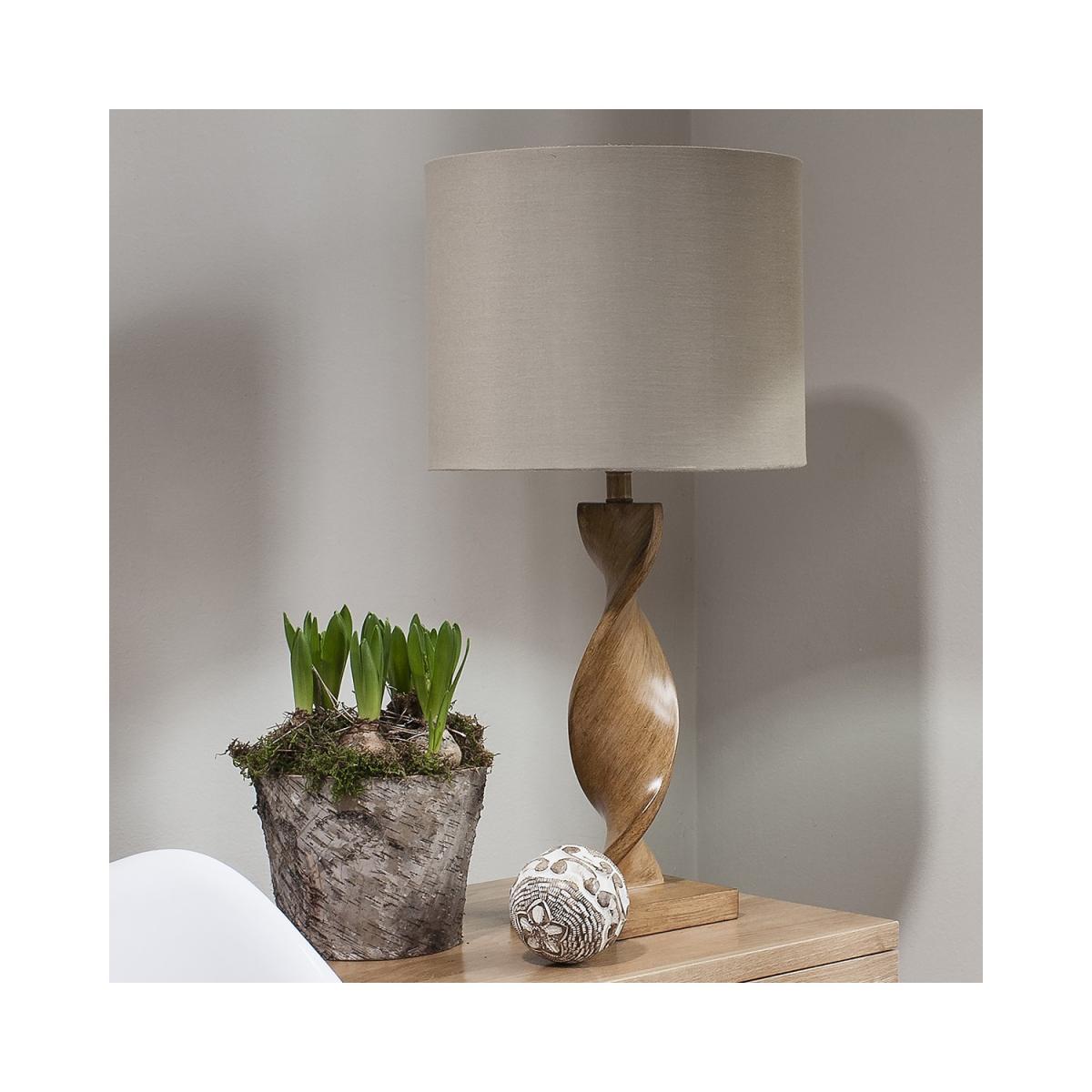 The Argenta Table Lamp is an elegant combination of a wooden base finished in a spiralling design and natural linen fabric shade.