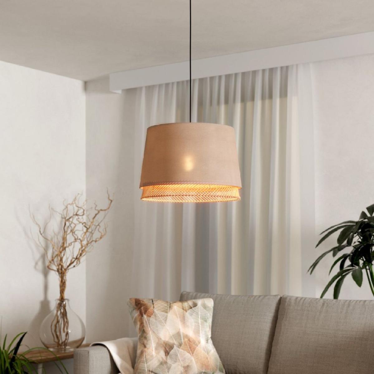 Tabley 1-light pendant ceiling light, featuring two round lampshades layered on top of each other, the outer linen lampshade in a natural grey finish and the inner shade made from bamboo. A harmonious blend of natural materials and modern elegance, this exquisite fixture features two round lampshades layered to create a unique and stylish look. The outer shade, crafted from natural-coloured linen, offers a subtle and refined aesthetic, while the inner shade, made from bamboo, adds a touch of organic warmth and texture. The layered design of the Tabley pendant light creates a soft, diffused illumination, perfect for creating a cosy and inviting atmosphere. Its adjustable construction ensures it fits seamlessly into spaces, providing versatile lighting solutions for various settings. Whether adorning a living room, dining room or hallway, this fixture enhances your decor with its understated elegance and thoughtful design. With its combination of natural grey linen and bamboo, the Tabley pendant ceiling light brings a touch of nature indoors while maintaining a contemporary edge. Tabley 1-light pendant ceiling light, featuring two round lampshades layered on top of each other, the outer linen lampshade in a natural grey finish and the inner shade made from bamboo. A harmonious blend of natural materials and modern elegance, this exquisite fixture features two round lampshades layered to create a unique and stylish look. The outer shade, crafted from natural-coloured linen, offers a subtle and refined aesthetic, while the inner shade, made from bamboo, adds a touch of organic warmth and texture. The layered design of the Tabley pendant light creates a soft, diffused illumination, perfect for creating a cosy and inviting atmosphere. Its adjustable construction ensures it fits seamlessly into spaces, providing versatile lighting solutions for various settings. Whether adorning a living room, dining room or hallway, this fixture enhances your decor with its understated elegance and thoughtful design. With its combination of natural grey linen and bamboo, the Tabley pendant ceiling light brings a touch of nature indoors while maintaining a contemporary edge.