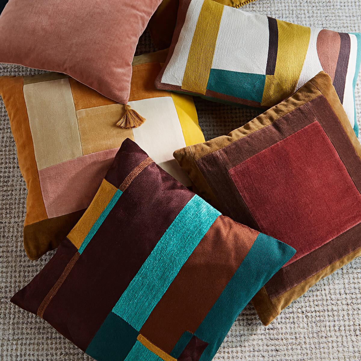 A grid-like graphic, punctuated by colours that reference vintage style. The Tadeo cushion cover brings abstract art to your sofa. Created by La Redoute Intérieurs. Product Details • 100% cotton velvet • Velvet patches on the front • Plain on back • Concealed zip fastening • Dimensions • 45 x 45cm