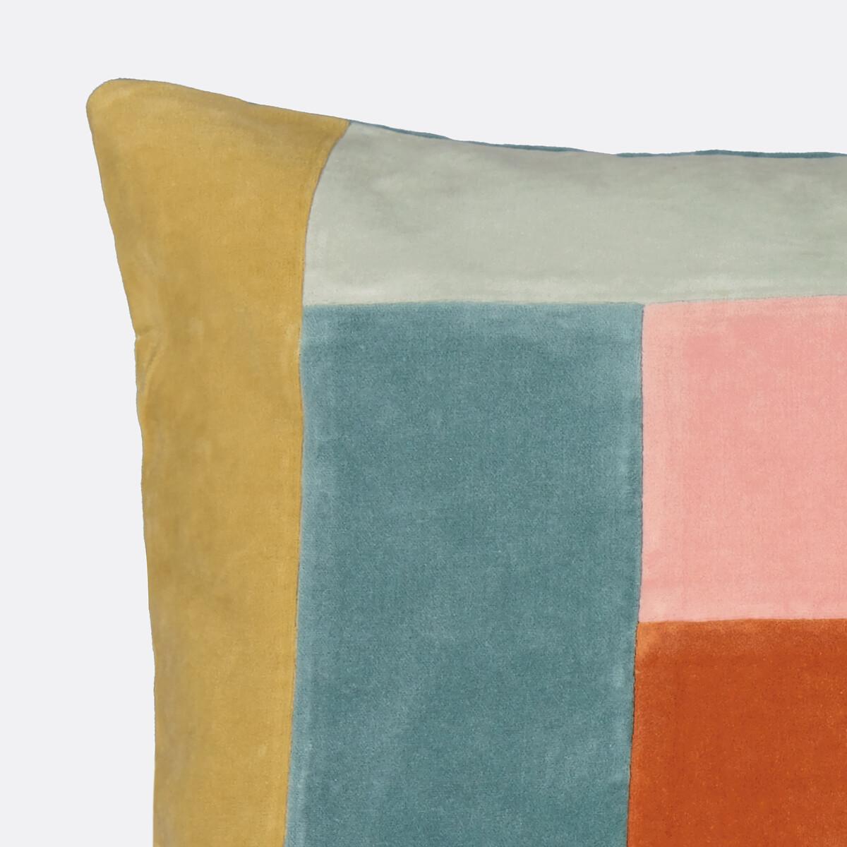 A grid pattern punctuated by revisited vintage colours. Soft velour that makes you want to snuggle up against it. The Tadeo cushion cover brings a touch of comfort and abstract art to your sofas. Created by La Redoute Intérieurs. Product Details • 100% cotton velvet • Velvet patches on the front • Plain on back • Concealed zip fastening • Care Advice • Machine washable at 30°CDimensions • 45 x 45cm • OEKO-TEX® Standard 100. Standard 100 certification by OEKO-TEX® tests textile products for harmful substances via an independent, international label.