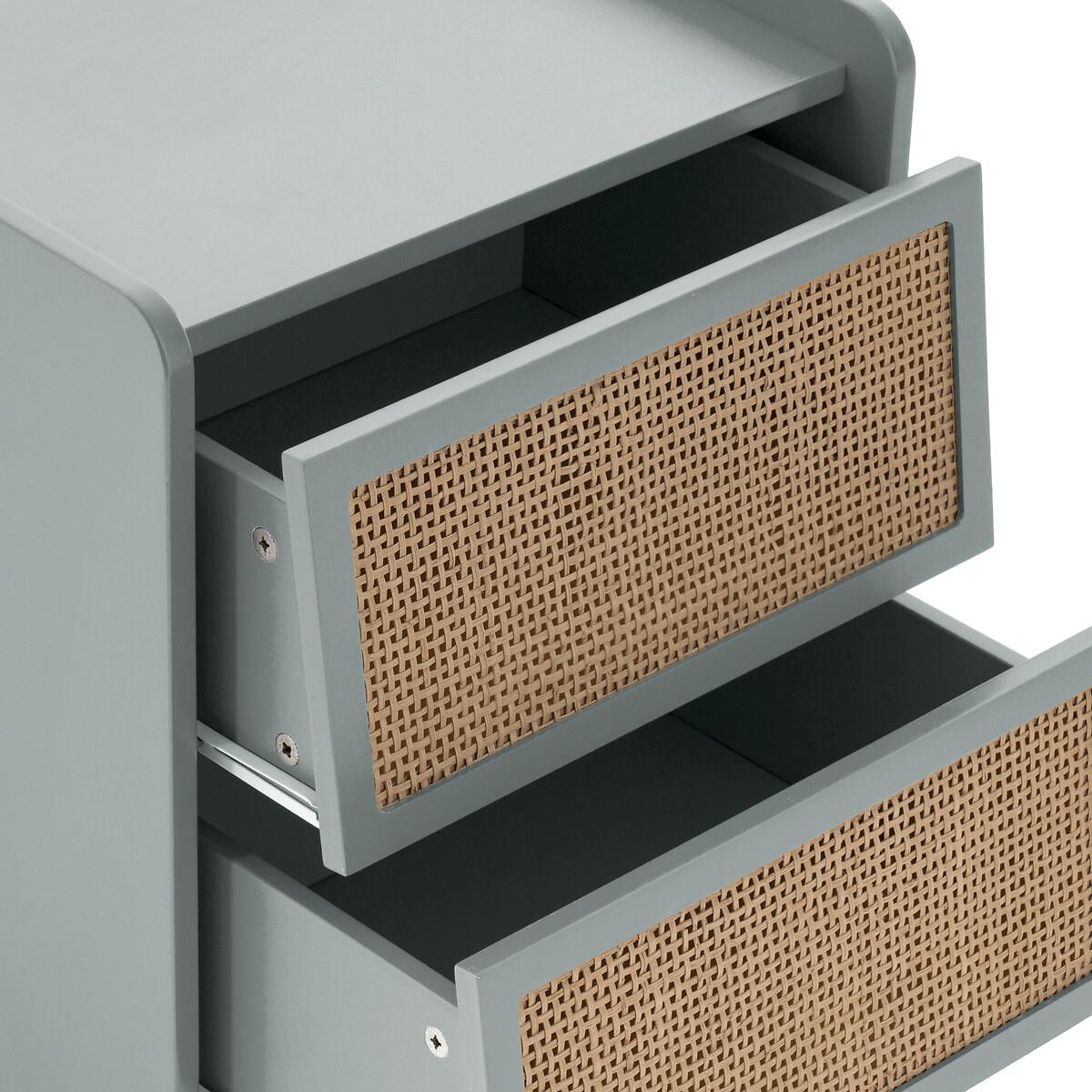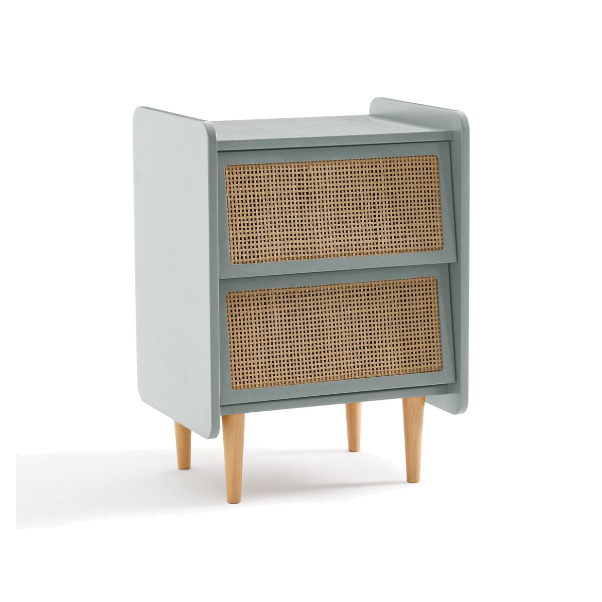 The combination of natural cane details and a painted pastel finish gives a modern feel: Whether in a room for adults or children, this bedside table will look great!