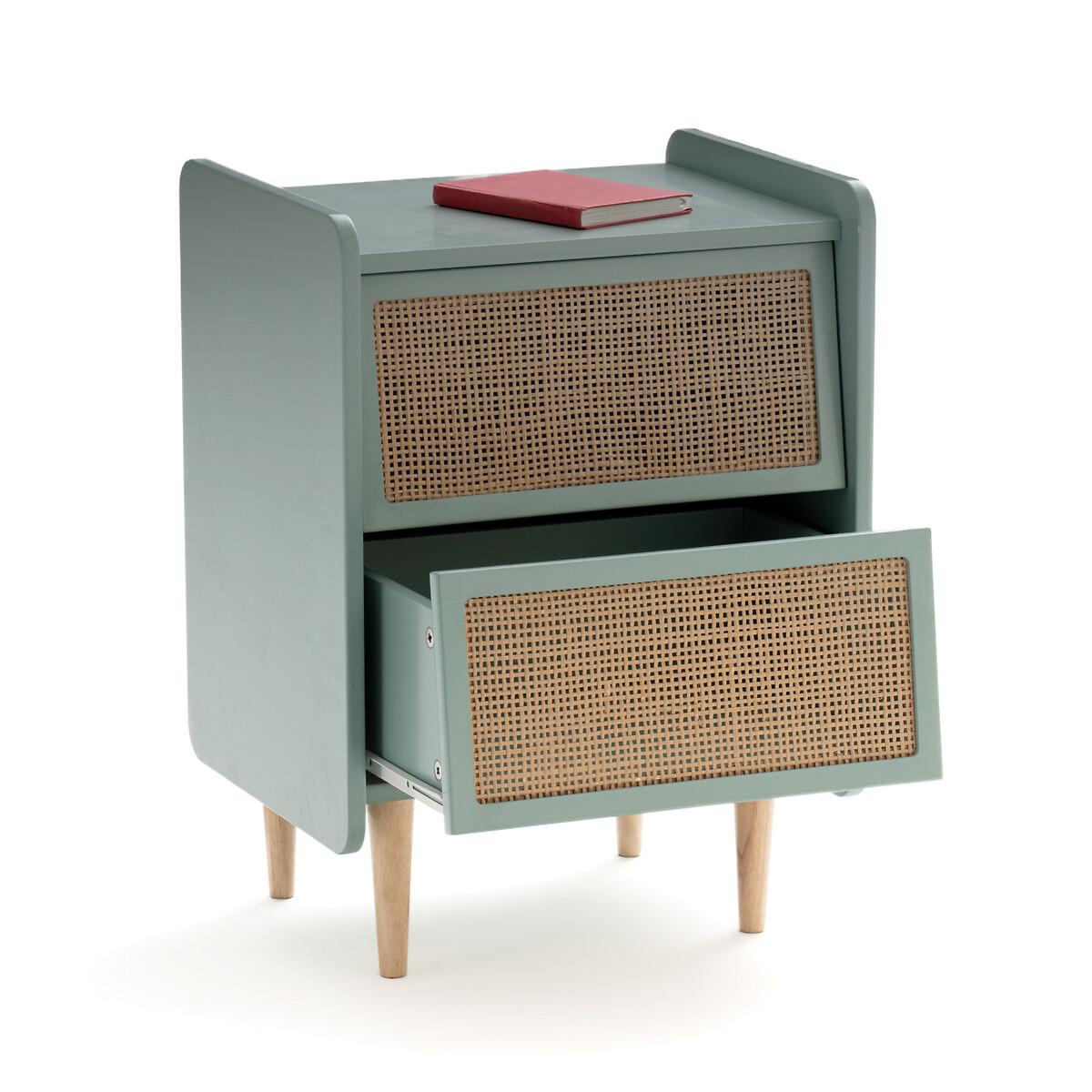 The combination of natural cane details and a painted pastel finish gives a modern feel: Whether in a room for adults or children, this bedside table will look great!