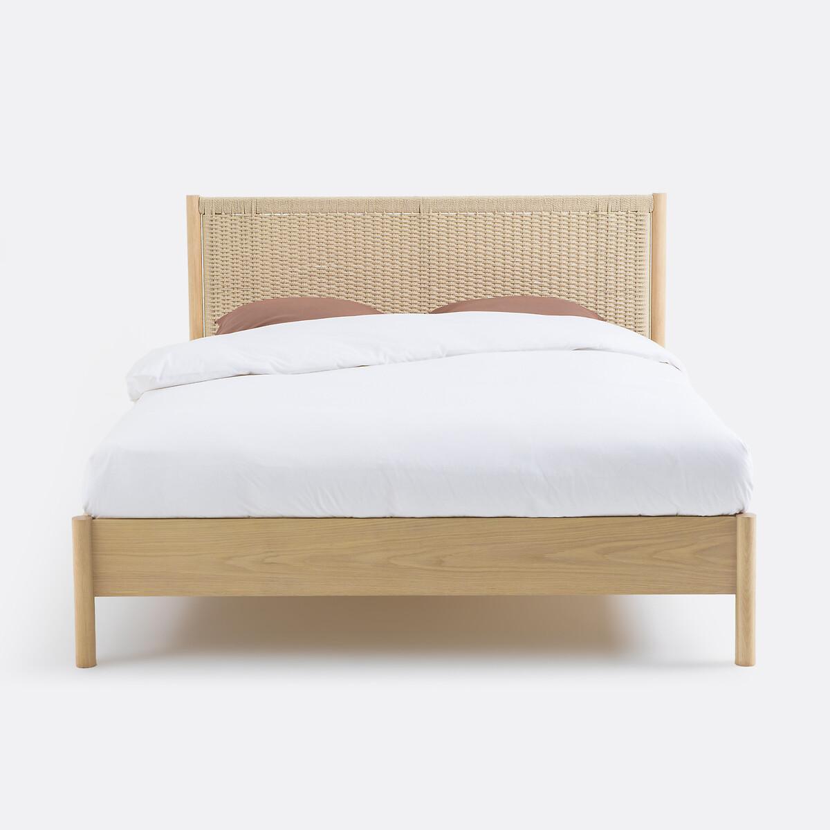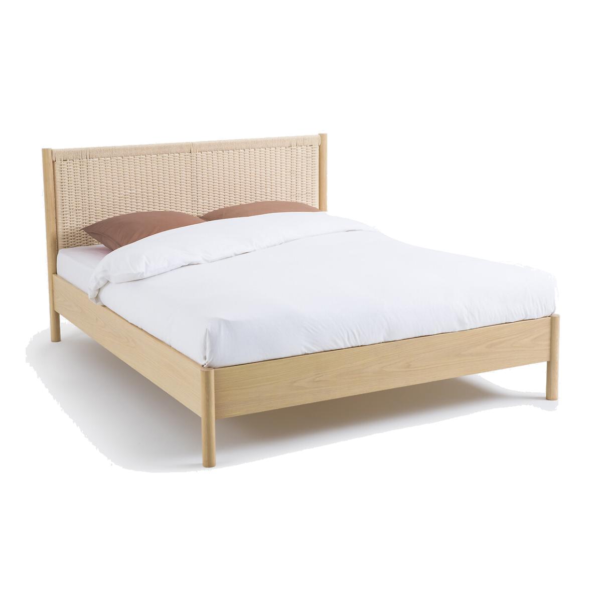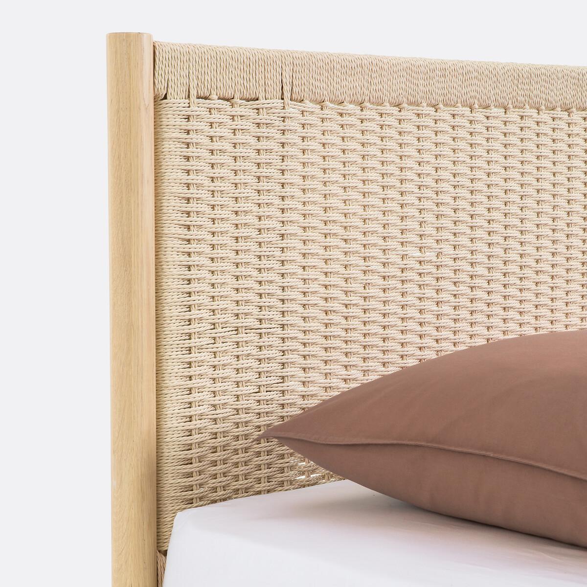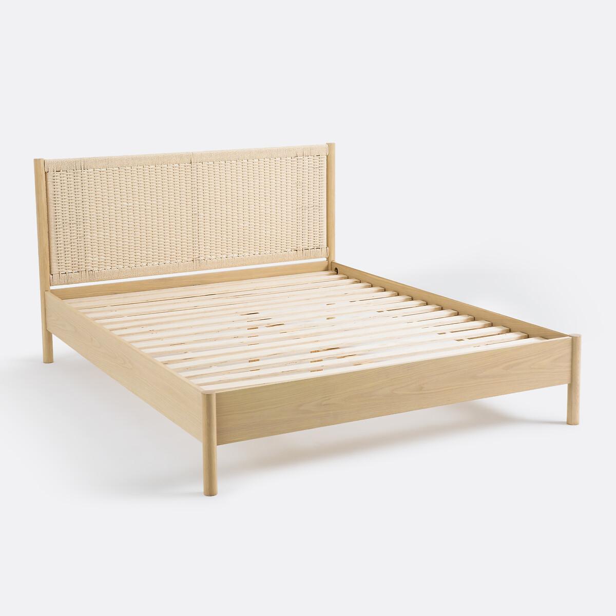 With its minimalist tribal design and headboard made from woven paper rope, the Taga bed invites you to enjoy a moment of comfort and well-being. Created by La Redoute Intérieurs. Product Details • Structure in solid oak and oak veneered MDF, bleached wood effect finish, nitrocellulose varnish • Headboard in woven paper rope • Supplied with poplar plywood slatted base. To move your bed, we advise you to lift it and not push or pull it. Dimensions King Size (160 x 200cm)Overall • Width: 167cm • Height: 101cm • Length: 208cm • Height of headboard : 101cm • Height of legs : 17.5cm • Weight: 44kg. Usable space • Storage height available under the bed: 17.5cm • This product requires assembly. • WOOD FROM SUSTAINABLY MANAGED FORESTS. FSC® certified wood comes from forests that are environmentally, socially and economically well managed. Dimensions and weight of parcel2 parcels • L173 x H11 x D14 - 36kg • L206 x H27 x D10.5 - 15kg