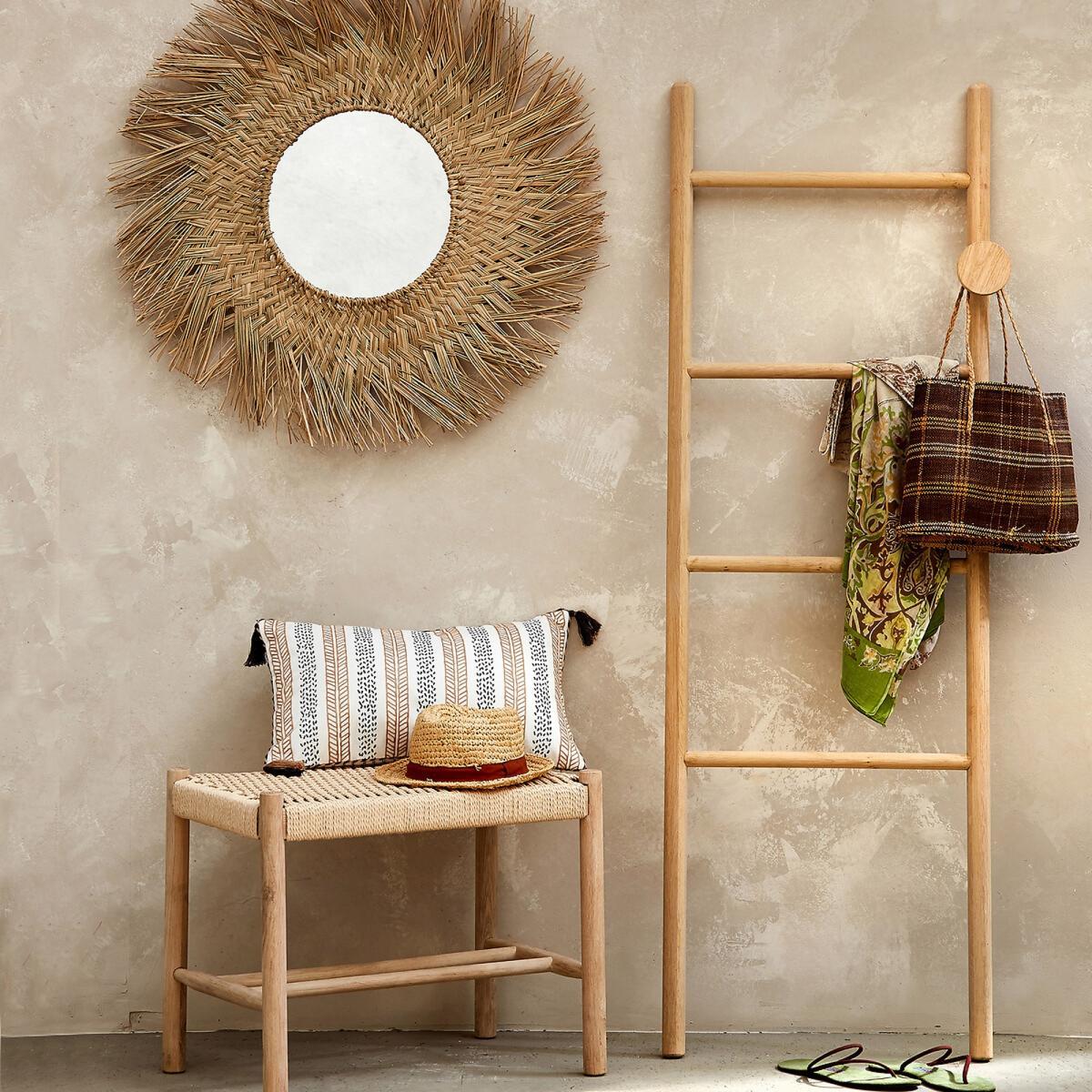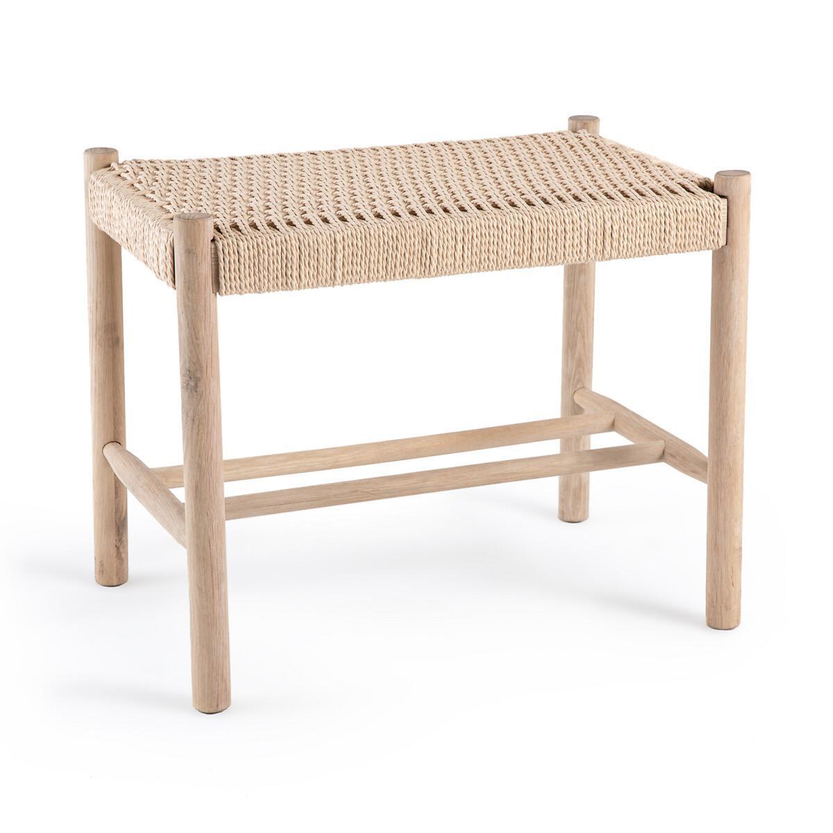 Bring a natural touch to your decoration with this Taga entrance bench / stool. Practical, it allows you to take your shoes off in an entrance or to have an additional seat. Product Details. Structure in solid birch and plaited seat in black tinted paper cord for the black colour. Structure in solid oak with a bleached wood effect and seat in natural-coloured rope for the natural colour. Find the rest of the Taga collection online. Dimensions. Length: 55cm. Height: 45cm. Depth: 45cm. Home delivery:Requires self-assembly. It will be delivered straight to your door!Note! Please ensure the parcel will fit through doorways or entrance halls. Dimensions and weight of parcel. L63 x H15 x D45 cm. 5kg.