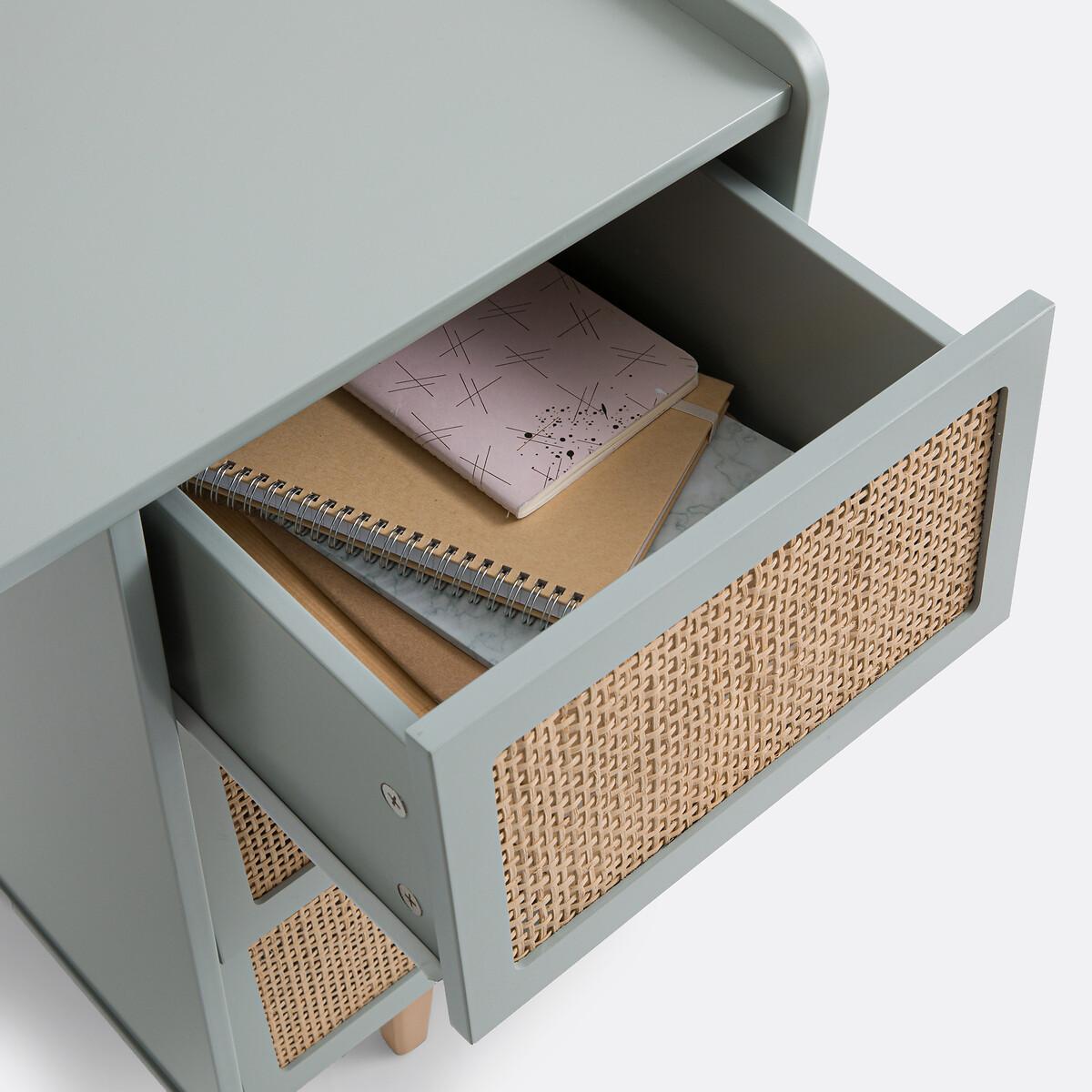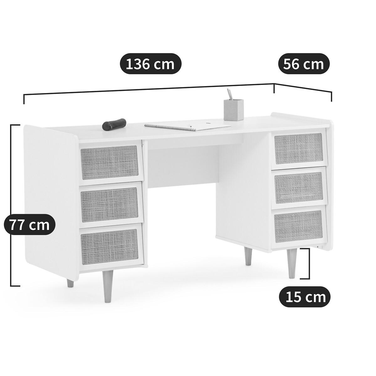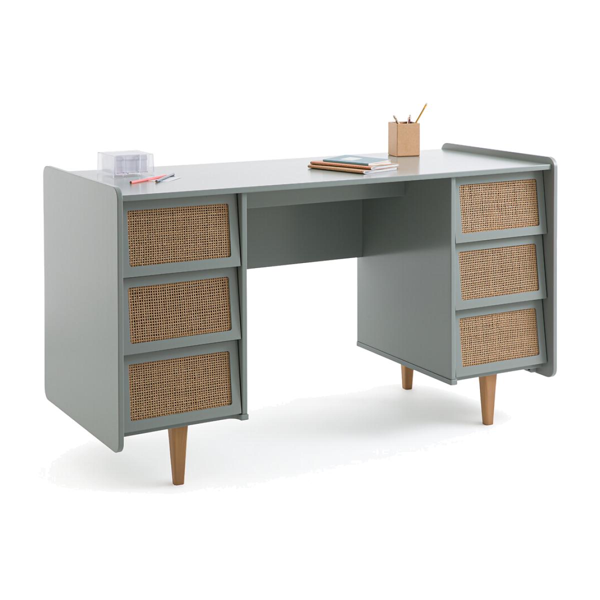 The combination of painted wood and rattan, in a simple design: the Taga double pedestal desk has everything to please adults and children alike!Product Details • Structure in FSC® certified MDF with acrylic finish (water-based paint without solvent) • Drawer fronts in rattan canework, with steel slides • FSC® certified solid pine legsDimensions. Overall • Width: 136cm • Height: 77cm • Depth: 56cm • Height of legs: 15cm • Weight: 50.5kg. Usable space • Drawer:L28 x H13 x D38cm • Top: L133 x H75.5cmDelivery:. Assembly required. Available for home delivery. Note! Please check that all access points are large enough to accommodate your delivery (doors, stairs, lifts) • WOOD FROM SUSTAINABLY MANAGED FORESTS. FSC® certified wood comes from forests that are environmentally, socially and economically well managed. Parcel Dimensions:2 parcels • L143 x H61.5 x D8cm. 29kg • L109 x H46 x D13cm. 25kg