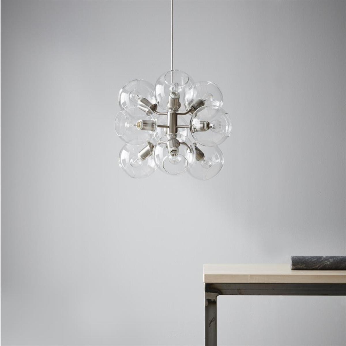 I love this pendant for its modern yet understated appeal, making it a versatile choice for a variety of interiors. Its clear glass bulbs add a touch of elegance while maintaining a contemporary edge, and the metallic accents bring a subtle industrial feel. It works particularly well in open-plan living spaces, kitchens, or dining areas where a statement piece is desired without overwhelming the room. For styling tips, consider pairing it with minimalist furnishings or using it as a focal point above a dining table. Ensuring the bulbs are at an appropriate height will help balance the space, and it can be combined with dimmable lighting to adapt the mood from bright and functional to cosy and intimate.