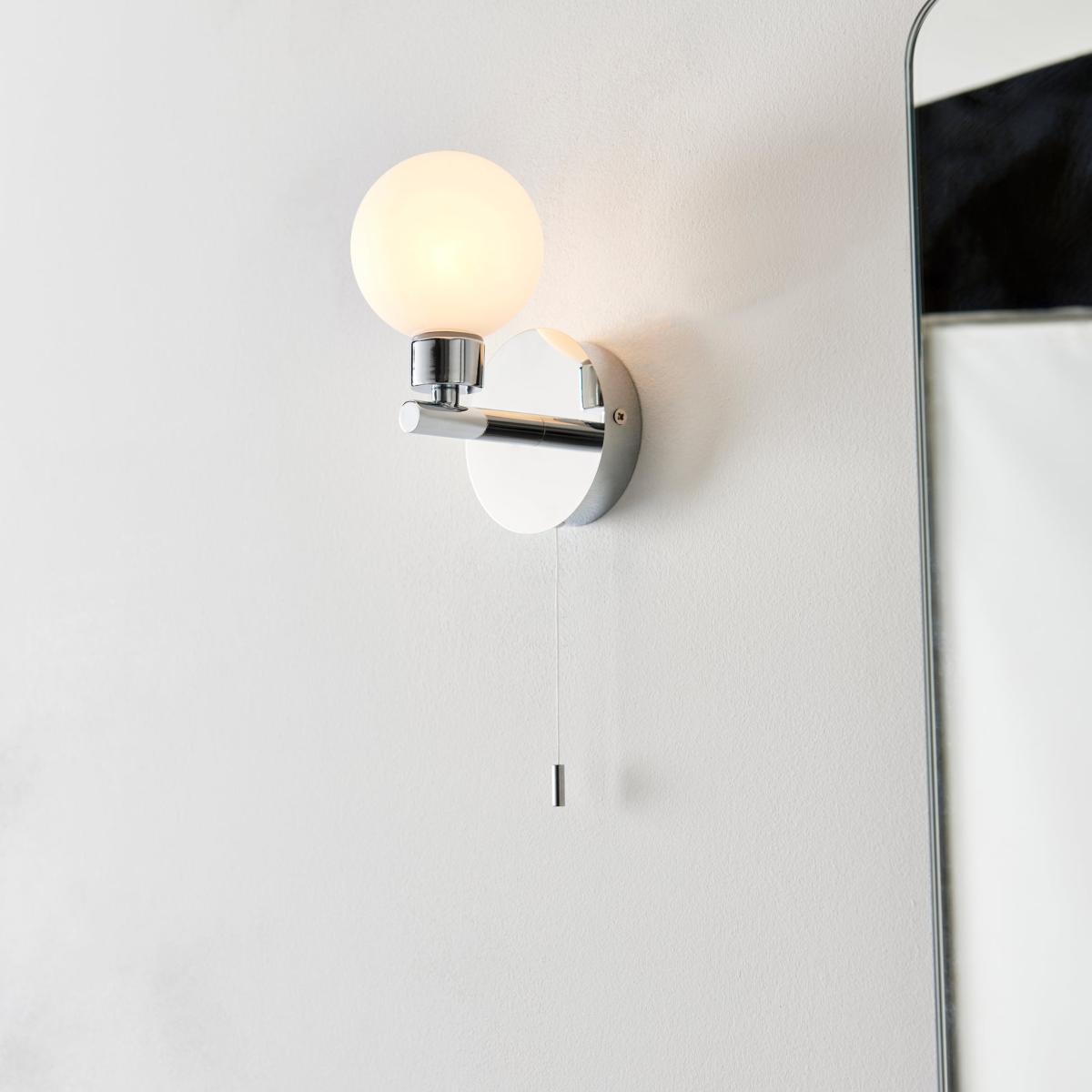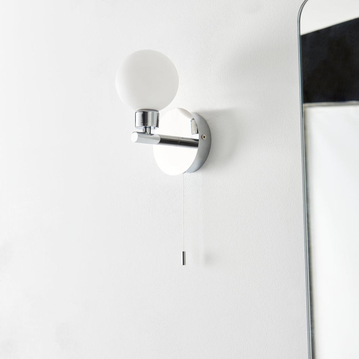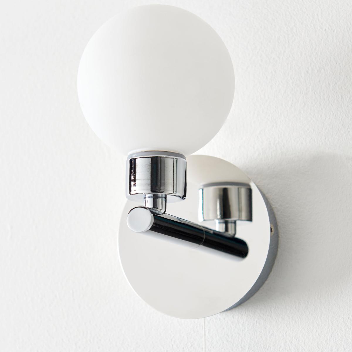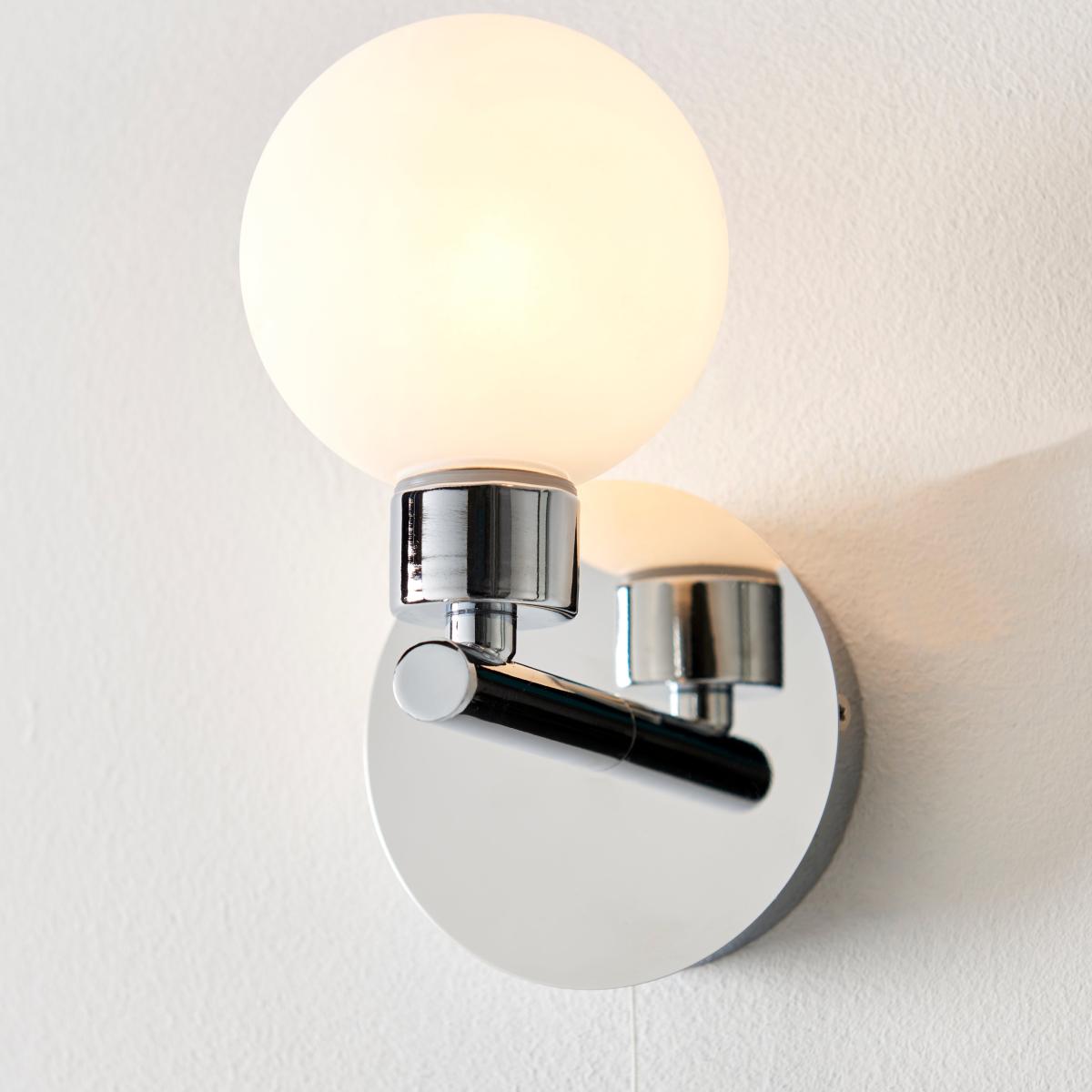 Modern wall light featuring opal glass shade A modern and stylish design, this wall light is part of the Tago range. Featuring a polished chrome finish, the wall light has been paired with a opal glass shades. Suited for use in hallways, bedrooms and lounges. Modern wall light featuring opal glass shade A modern and stylish design, this wall light is part of the Tago range. Featuring a polished chrome finish, the wall light has been paired with a opal glass shades. Suited for use in hallways, bedrooms and lounges.