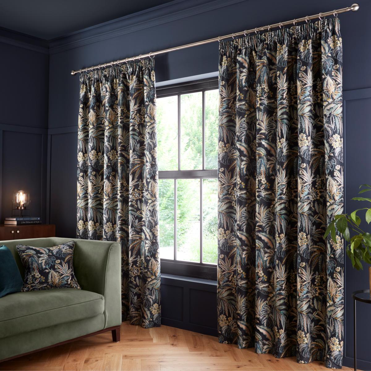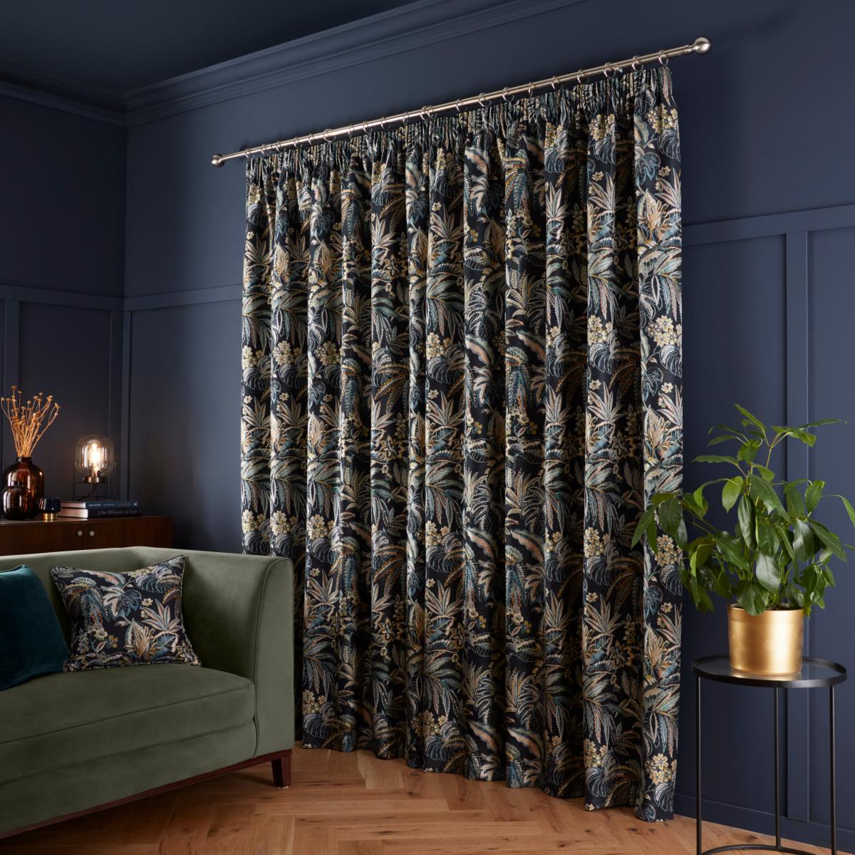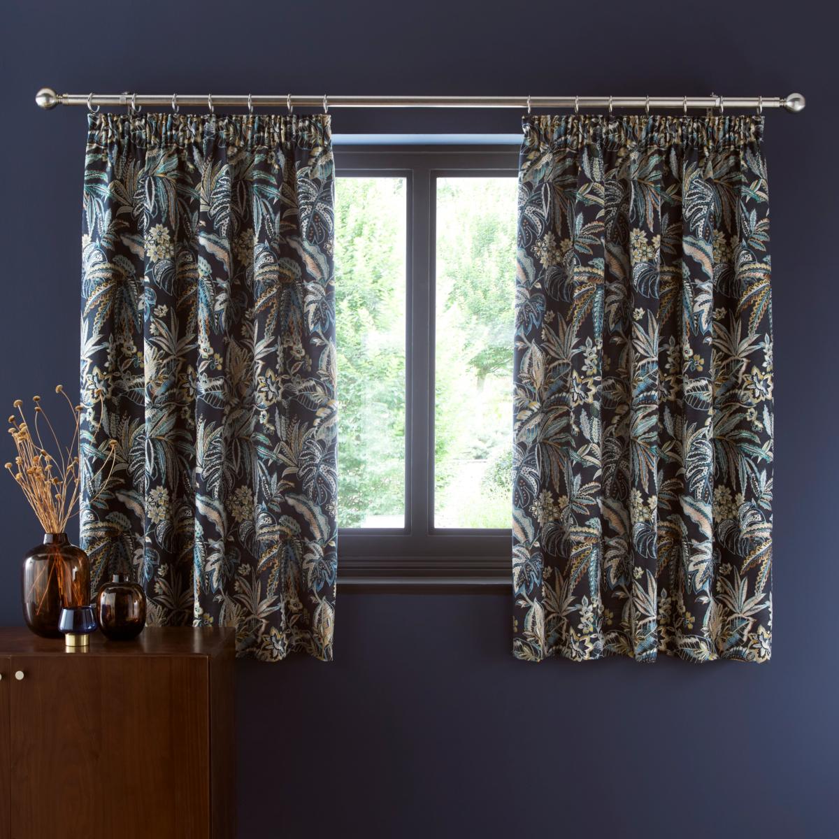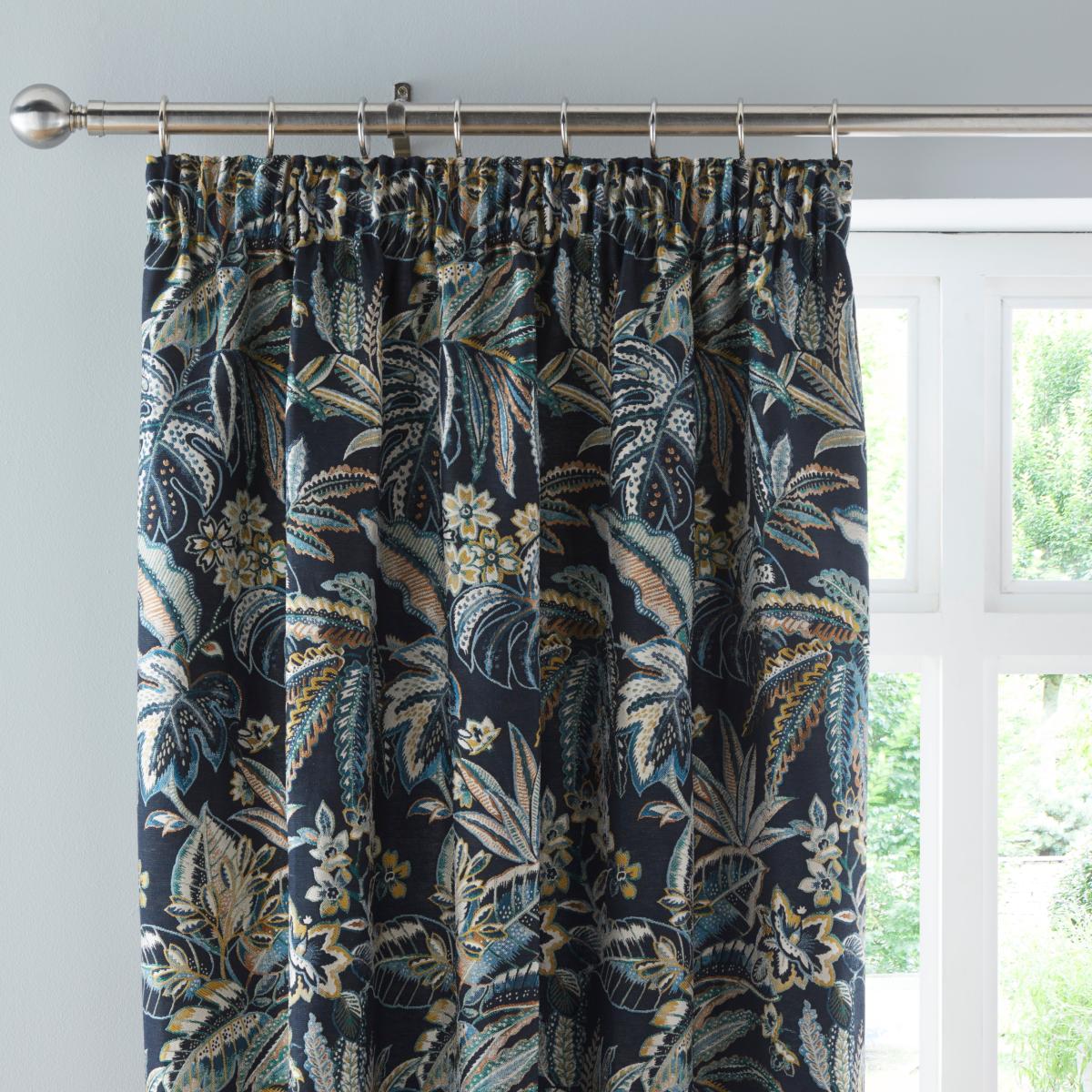 Reform your space with the exquisite Tahiti Pencil Pleat Curtains in Teal. Featuring stunning, leaf woven patterns, these curtains effortlessly blend beauty and sophistication: the rich colour palette, adorned with pops of colour, adds vibrancy and depth to any room. Designed with a traditional pencil pleat header, these curtains showcase timeless elegance and attention to detail; crafted from jacquard fabric, they exude a sense of luxury. The lined curtain panels provide privacy and insulation, ensuring a comfortable and inviting atmosphere in your home. Add a touch of sophistication and style to your room setting with these fabulous woven curtains; embrace the stylish ambience and visual delight these curtains offer and experience the remarkable transformation they bring to your living space. Complete the coordinated look with the matching cushion, adding an extra touch of elegance to your decor. Please note: pattern matching cannot be guaranteed across multiple pairs of curtains.