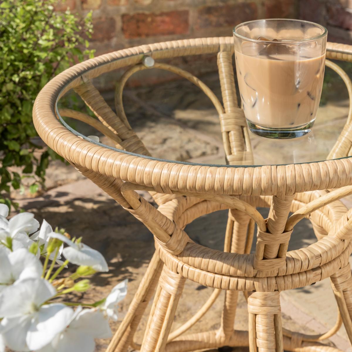Relax in style this summer with the Tahiti Side table, beautifully crafted with an aluminium powder coated frame that is beautifully wrapped with rattan and complete with a glass table top. This Tahiti side table can be paired with the Tahiti Snug Swivel Seat to complete the look.