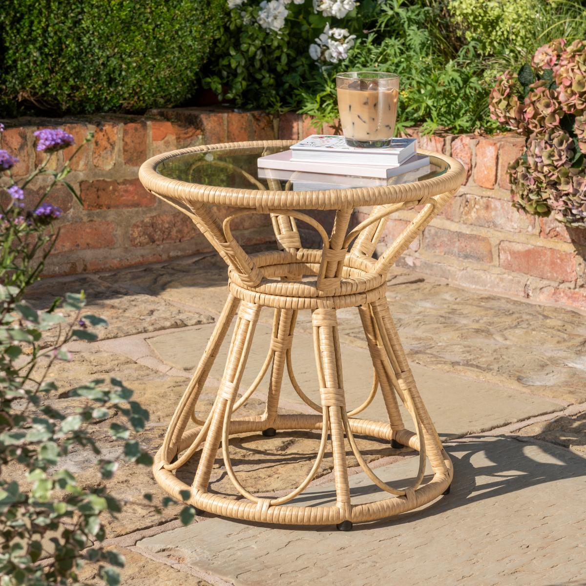 I love this side table for its natural, laid-back aesthetic-it's perfect for creating a relaxed outdoor vibe. The wicker design in the brown finish makes it versatile, working well in both traditional and boho garden settings, and it can also bring warmth to transitional indoor-outdoor spaces. To style it effectively, consider pairing with textured cushions or a colourful tray to add practicality and visual interest. It’s ideal for small potted plants, drinks, or a cosy lantern in the evening. Its lightweight construction means it can be easily moved around, making it a functional yet stylish addition to any garden or patio.