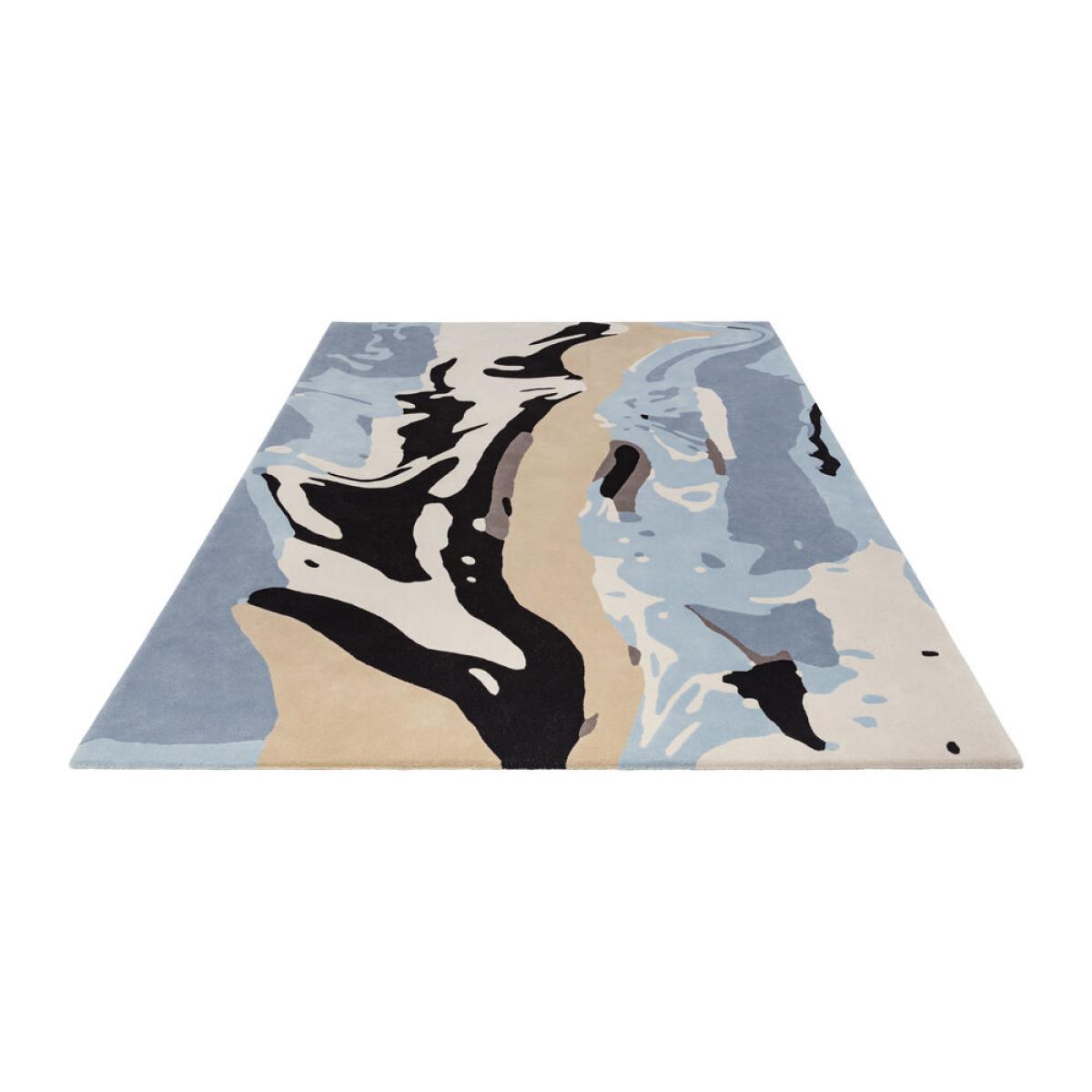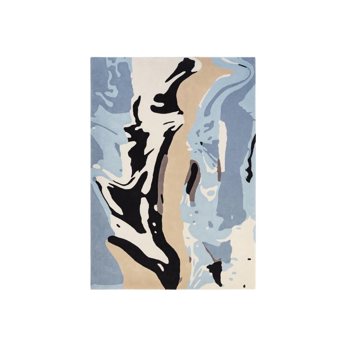 I love the black and blue palette of this one for adding a sophisticated touch to both contemporary and eclectic interiors. Its abstract pattern lends itself well to modern living spaces, providing visual interest without overwhelming the room. It works especially well under a neutral sofa or dining table, grounding the space while adding texture. Practical styling tips include layering with a plain rug to soften acoustics or pairing with metallic accents for a chic, polished look. It’s versatile enough to work in open-plan living areas, bedrooms, or even offices, making it a great statement piece that remains functional and easy to style around.