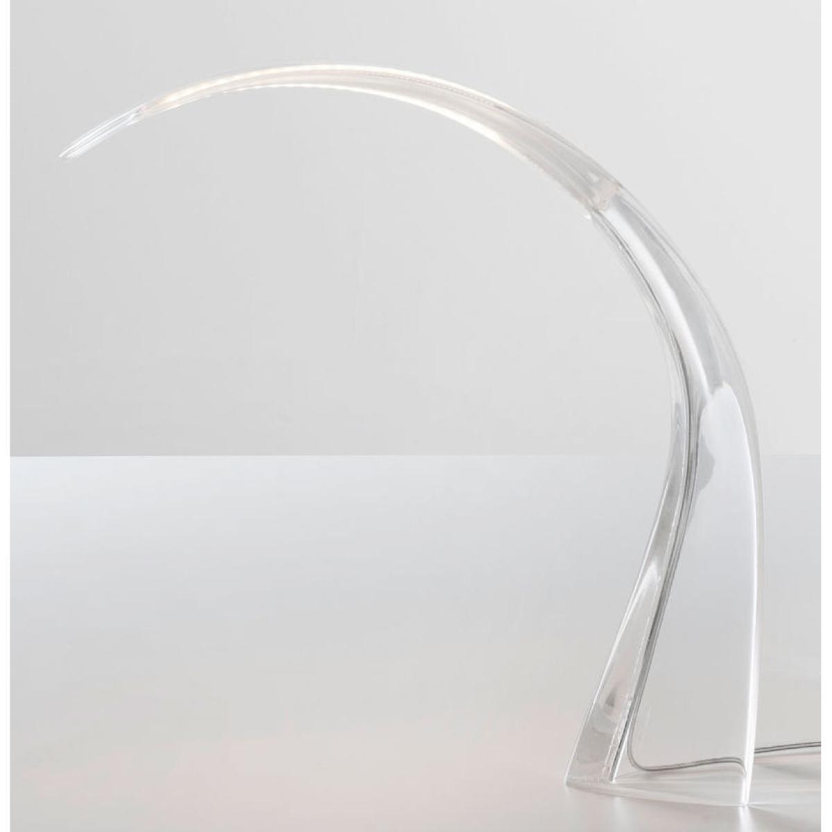 Taj Mini is the newest arrival in the Kartell Lights family. More than a lamp, it is a three dimensional sign, a sculpture of light, a presence that keeps us company on our desk or on a piece of furniture. Although Taj Mini is a table lamp, it is a departure from the stereotype which demands that it be articulated, jointed and mechanised and leans towards a simple shape that is a practical answer to the function it is called upon to perform. Beautiful both when turned on and when turned off, Taj Mini exploits LED technology to optimise and minimise the light source as much as possible and at the same time it is a new step in the corporate technical challenge to produce an object from it unique know-how.