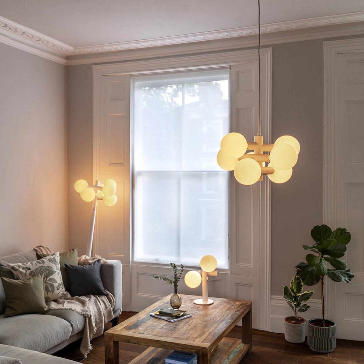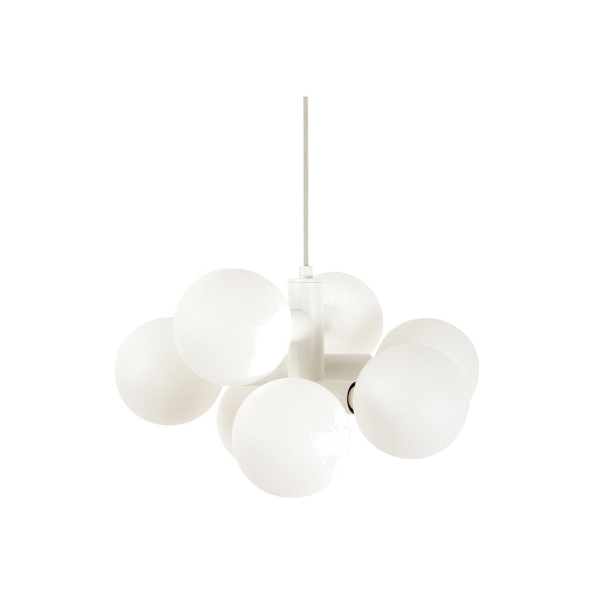 I love this pendant for its modern yet approachable design; the white glass spheres give it a clean, minimalist vibe that works beautifully in contemporary interiors. It's versatile enough to suit dining rooms, kitchens, or even high-ceilinged spaces like hallways, adding a subtle sculptural element without overwhelming the room. For styling, I recommend pairing it with sleek or neutral-toned surroundings to let the chandelier stand out, and consider adjusting the hanging height for the perfect balance-aim for around 75-90cm above surfaces in dining areas. This fixture also works well in Scandinavian-inspired schemes or modern minimal interiors, but it can elevate eclectic spaces too with its sculptural appeal.
