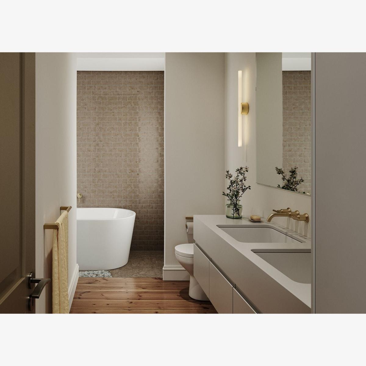 Kilter is inspired by balance. Mirroring the tubular shape of the bulb, the circular wall fixture creates an anchor point for the linear bulb to sit perfectly in its centre. Unlike other similar bulbs on the market, Kilter is designed with frosted glass that subtly exposes and celebrates the internal filament inside when illuminated. Mounting flush to the wall to create a seamless exchange with the environment, the circular aluminium shell is designed to house the Kilter S14d light source. A rubber gasket protects the bulb and fixture from moisture, making it an ideal bathroom or vanity light, while the clean and contemporary construction references its heritage in architectural lighting.