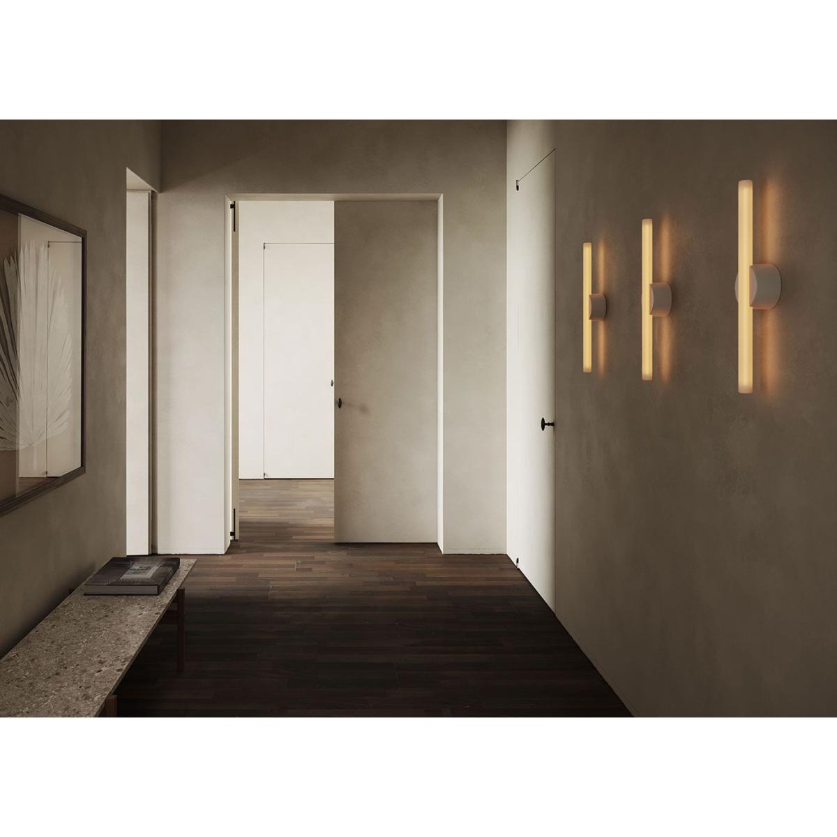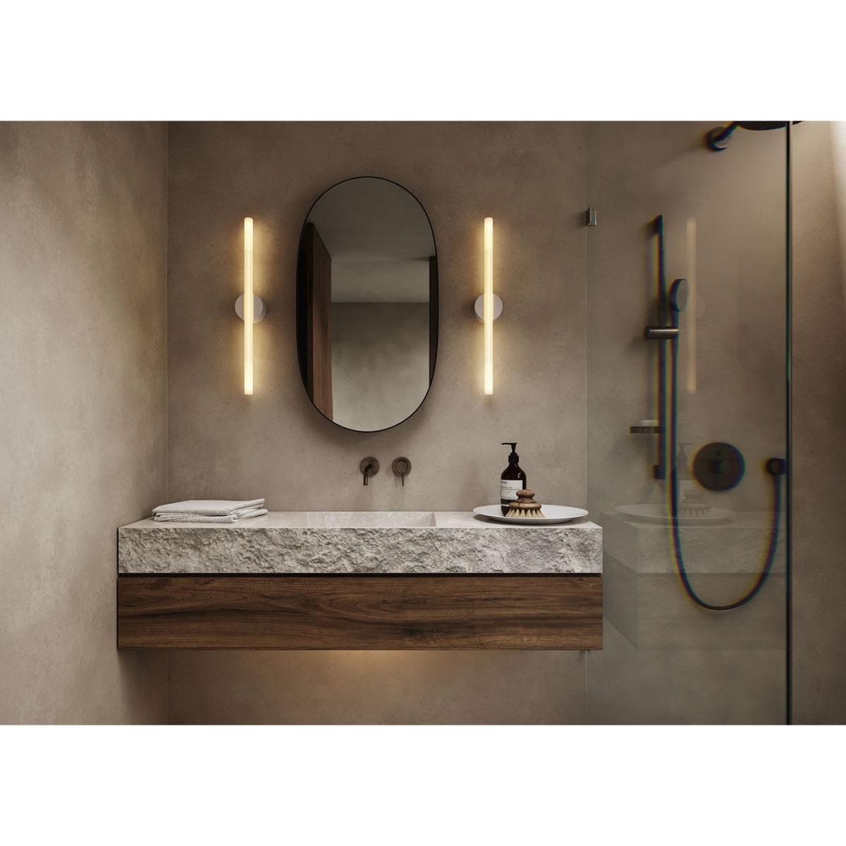 Kilter is inspired by balance. Mirroring the tubular shape of the bulb, the circular wall fixture creates an anchor point for the linear bulb to sit perfectly in its centre. Unlike other similar bulbs on the market, Kilter is designed with frosted glass that subtly exposes and celebrates the internal filament inside when illuminated. Mounting flush to the wall to create a seamless exchange with the environment, the circular aluminium shell is designed to house the Kilter S14d light source. A rubber gasket protects the bulb and fixture from moisture, making it an ideal bathroom or vanity light, while the clean and contemporary construction references its heritage in architectural lighting.