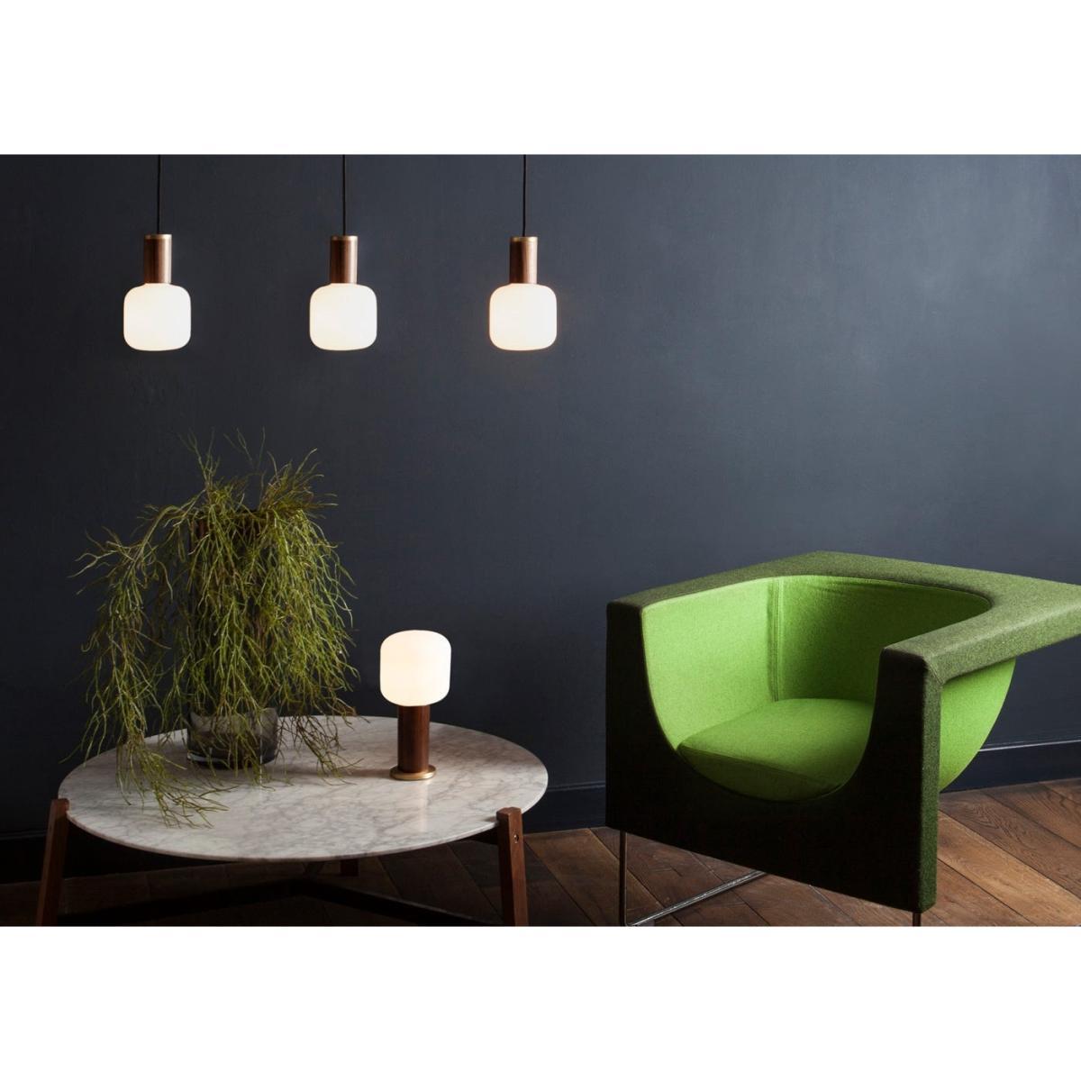 I love the Tala Oblo bulb for its sleek, minimal design that adds a modern touch without overpowering the space. It’s perfect for contemporary and eclectic interiors, especially when paired with statement lighting fixtures or used as part of a layered lighting scheme. Its warm LED output creates a cosy ambiance, making it versatile for lounges, kitchens, or dining areas. For practical styling tips, consider installing it in clusters for a sculptural effect or using dimmable settings to adapt the mood. Its simple yet elegant design also works well with natural materials and bold colour schemes, like the vibrant green armchair in this space - it’s a great way to add a contemporary edge while maintaining comfort.