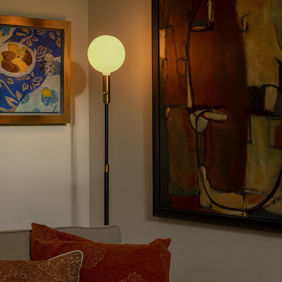 Illuminate your home ins tyle with this Poise floor lamp from Tala. Featuring a powder-coated steel structure in a matt black finish with chic brass detailing, the height is adjustable so can be customised to your liking. Key features: * Material: powder coated steel, brass * Dimensions: Ø23.4xH124-170cm * Cable length: 2.9m * Light source: 1x E27 LED MAX 25W (included) * Matt black colour * Brass detailing * Adjustable height * Dimmable function * IP rating: IP44 * CE certified