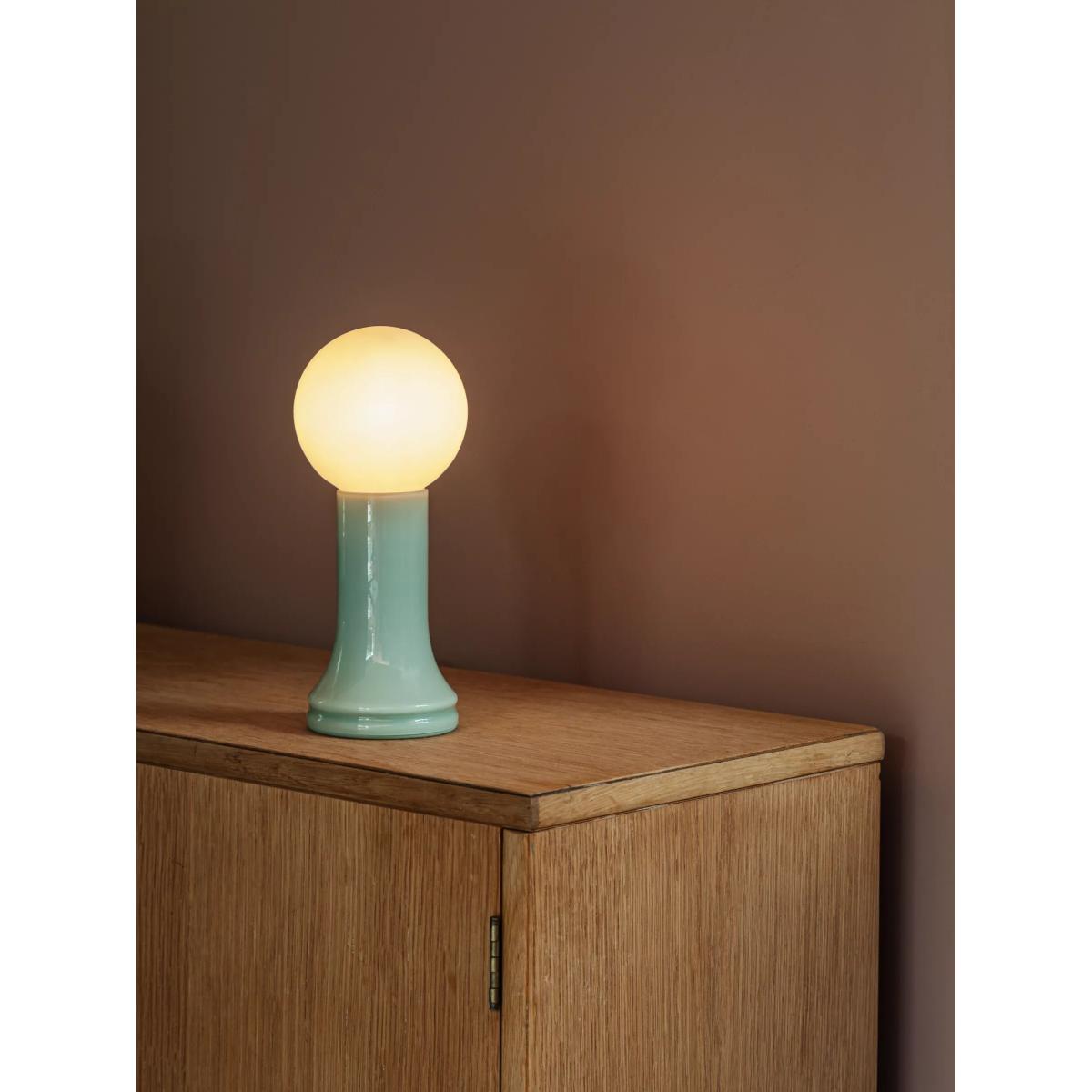 The Shore table lamp is an elegant light from Tala, mouth-blown and paired with a spherical matte white bulb. The in-line dimmer offers unrivalled dim to warm technology.