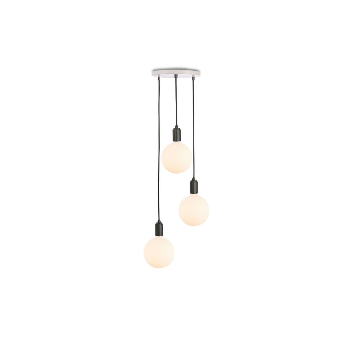 Finding elegance in simplicity, this lighting system features three Sphere IV bulbs suspended from a white circular ceiling canopy. The Sphere IV is Tala's largest bulb, with a perfectly spherical shape and a matte white finish. Boasting flicker-free, dim-to-warm technology, these bulbs are perfect for creating ambience in any interior setting. Available in four unique finishes, the pendants can also be adjusted to hang at varying heights.