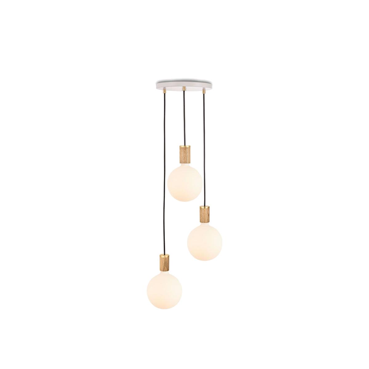 Tala Small White Canopy With 3 Oak Pendants and 3 Sphere IV Bulbs - Heal's UK Lighting