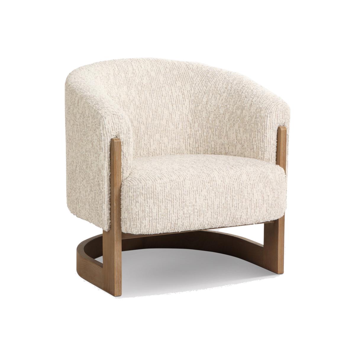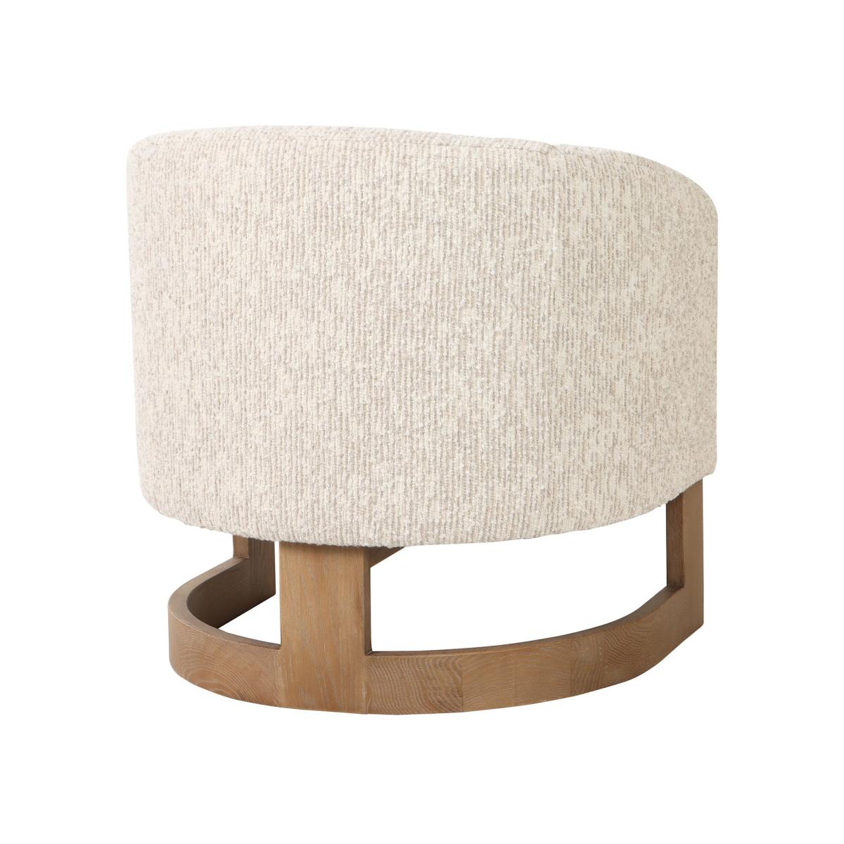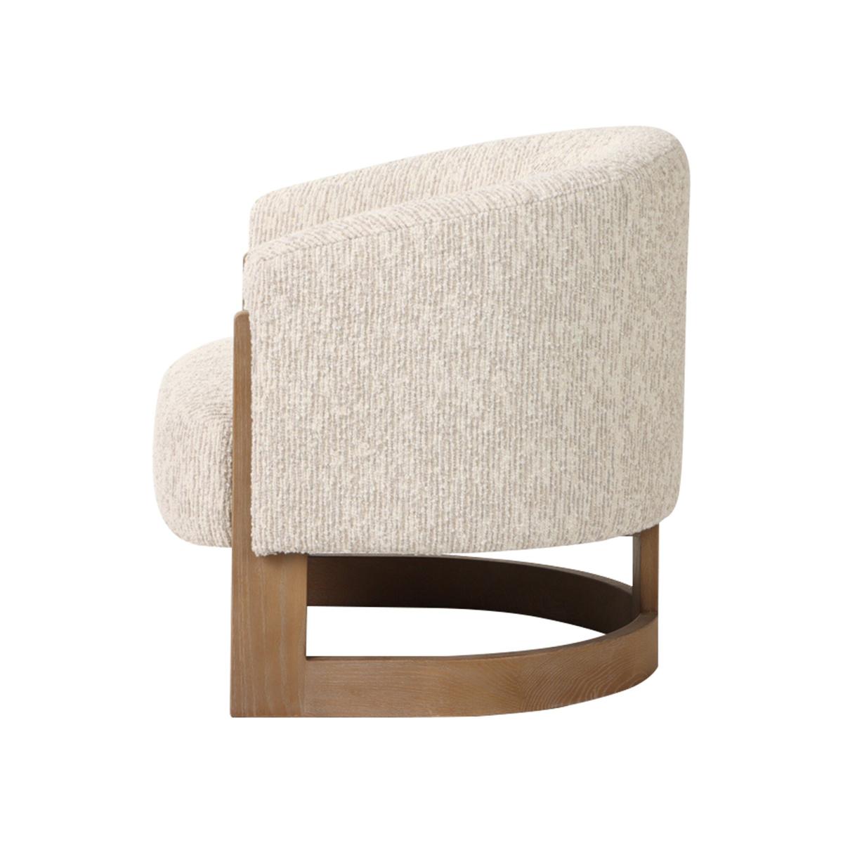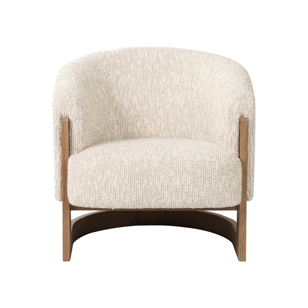 The Neutral Fabric Talbot Armchair combines a striking curvaceous design with a soft, neutral fabric, offering both comfort and elegance. Its contemporary style seamlessly blends with any decor, while the sturdy wooden legs provide durability and a natural touch. Perfect for adding a sophisticated yet inviting feel to any living space.