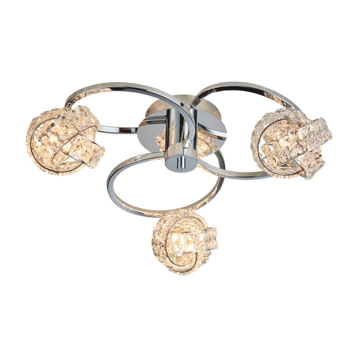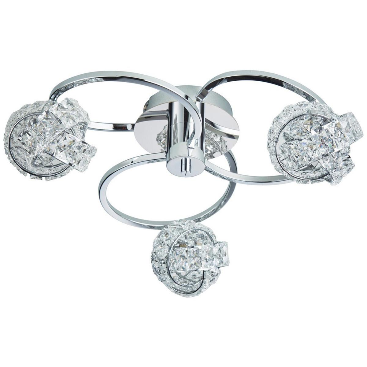 The ceiling light features clusters of inter-linked clear glass crystals, carefully joined to polished chrome plated looping arms, creating a decorative sculptural look. This eye-catching light is both practical and stylish and looks at home in a wide range of interiors. Pair with G9 LED lamps for the perfect decorative light effect.