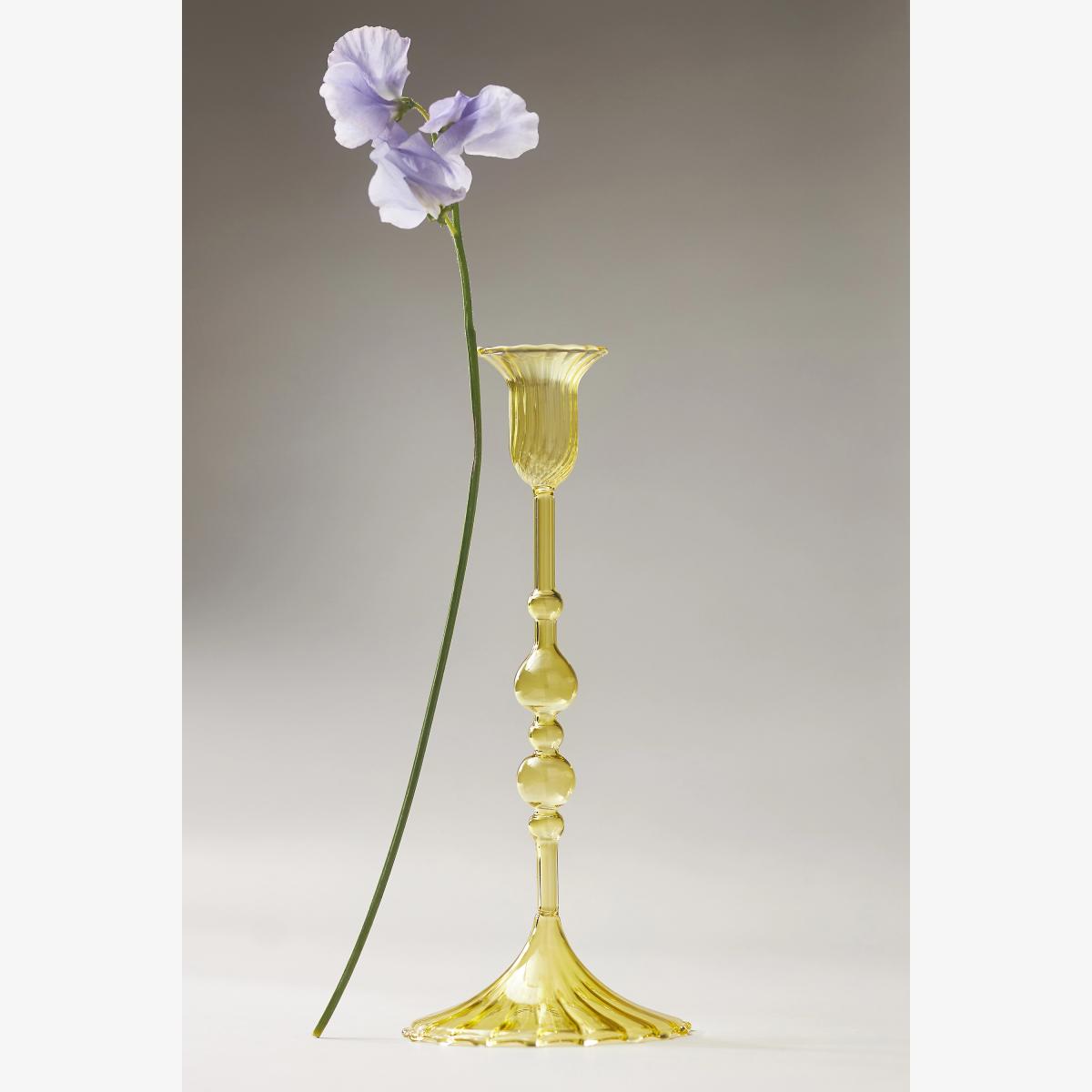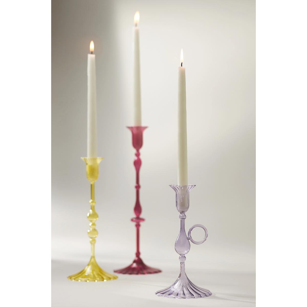 Add intention to your everyday routine or moments of self-care with this beautiful candle holder that features a sculptural glass form. Although an icon of dinner parties, tapers and pillar candles can bring mindfulness to your daily meditations, yoga practice, or evening bubble baths. Add to your collection with our new festive take on this *only-at-Anthro* classic. Please note: The composition of borosilicate glass allows for beautiful transparency and thermal stability but can make it more susceptible to cracking and breaking. Please handle this style with care! * Exclusively at Anthropologie * Sold individually * Soda lime glass, borosilicate glass * Wipe clean with soft cloth * This item is intended for indoor use * Imported
